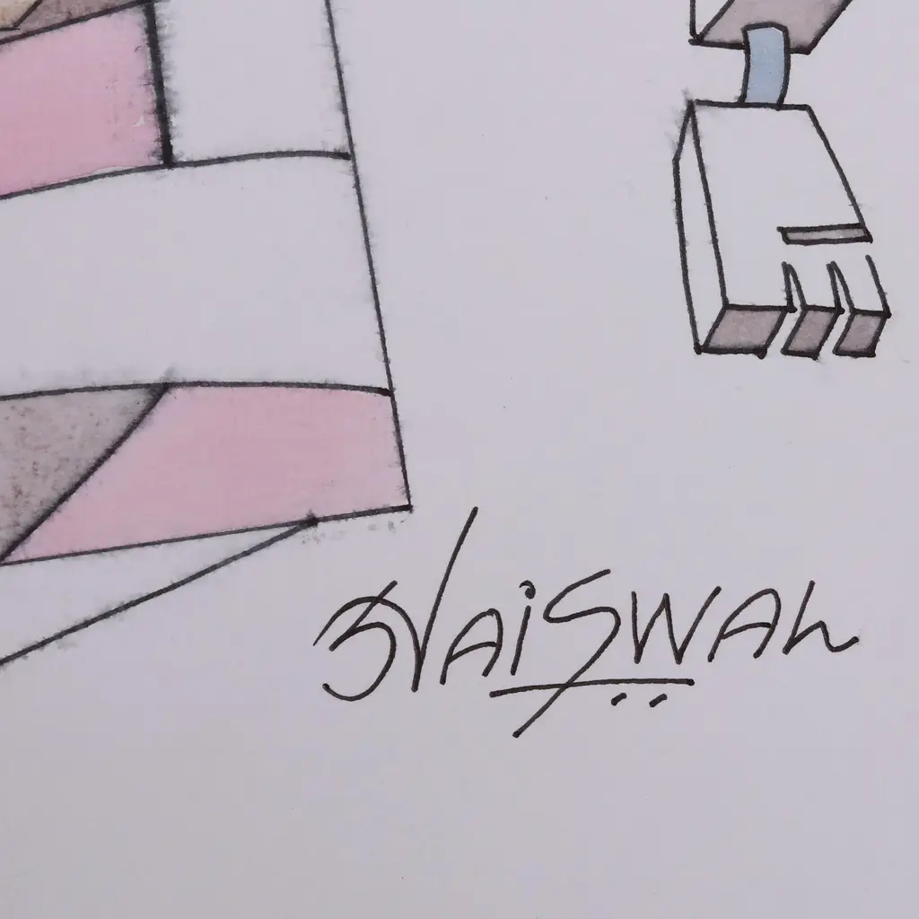 Signed Modern Cubist Painting By An Indian Artist- Sky The Limit
