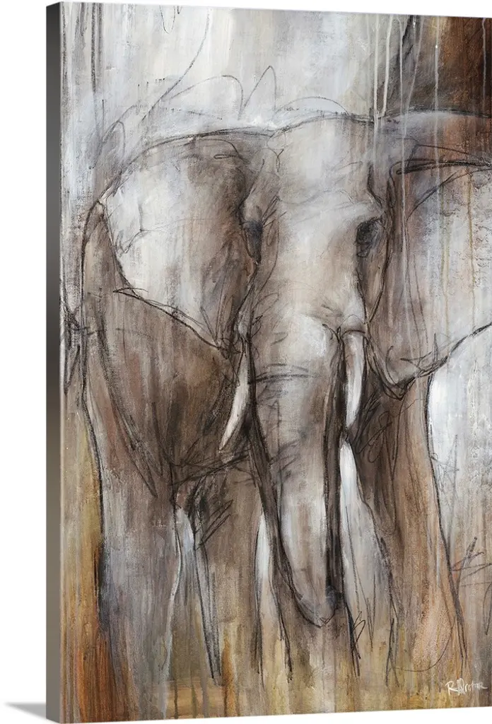 Signed Painting Of An Elephant In Black And White- Watching The Moon