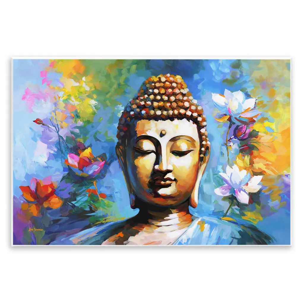 Signed Painting Of Buddha With Leaves From India- Moksha - The Final Truth