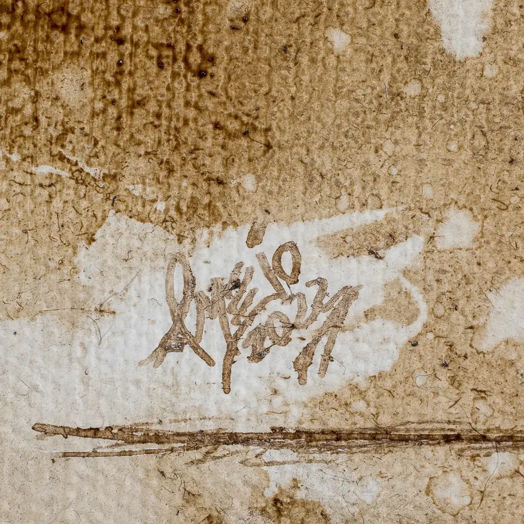 Part of his Caffeine series, Jorge Alberto Merino uses ink and a coffee wash on canvas to create this whimsical composition. The artist illustrates a unique scene of an elephant, a frog and a snake together. "This work explores the beauty of the incomprehensible, of the advantages we can fine in our problems, of the beauty they may hold," he muses. "Not everything is bad and we need to know how to sieze the opportuities that life offers us even when everything seems bad. In this way, we can take advantage of the best of ourselves and come out of thesituation as a different person." Titled "Danza de Los Problemas" in Spanish.