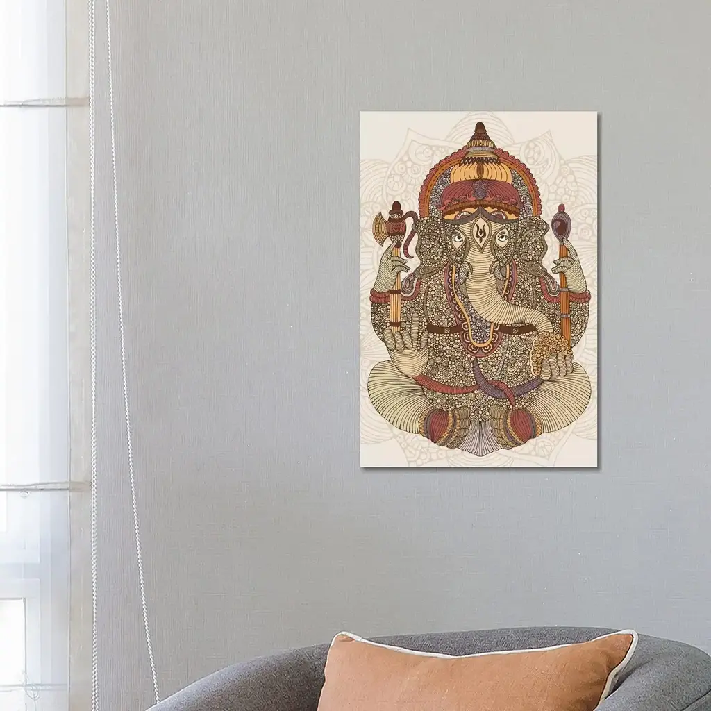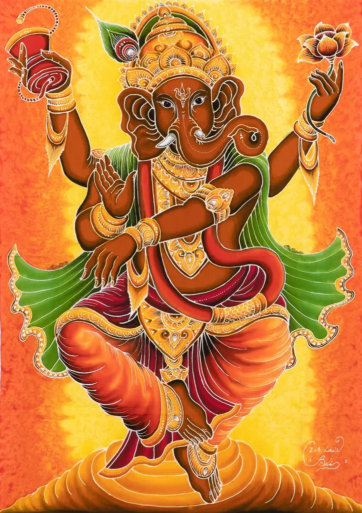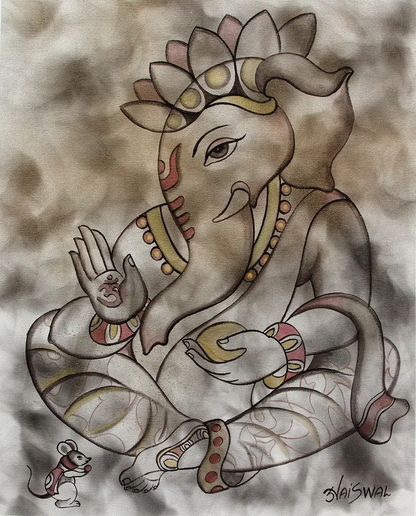 Signed Unstretched Hindu Painting Of Ganesha In Warm Palette- Gajanana