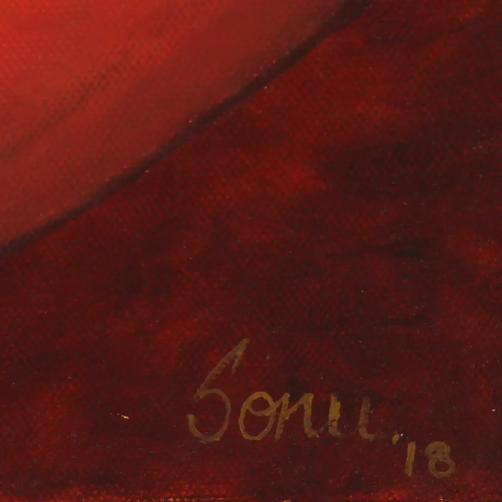 Honoring Ganesha's might and generosity, Indian artist Sonu Chopra paints an impressionist composition with oil, using a warm palette reminiscent of the benevolence of the Hindu god. She titles her work Gajanana, a Sanskrit word meaning "elephant-faced," an alternative name for Ganesha.
