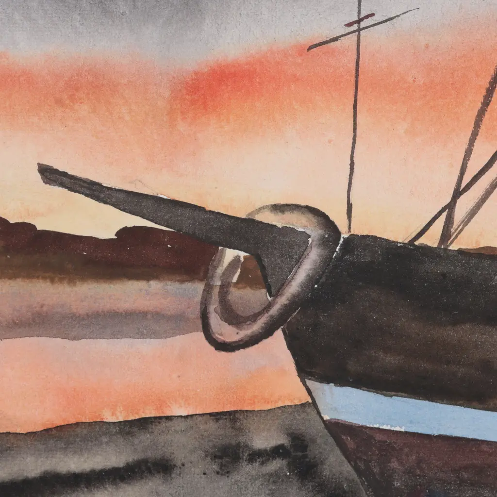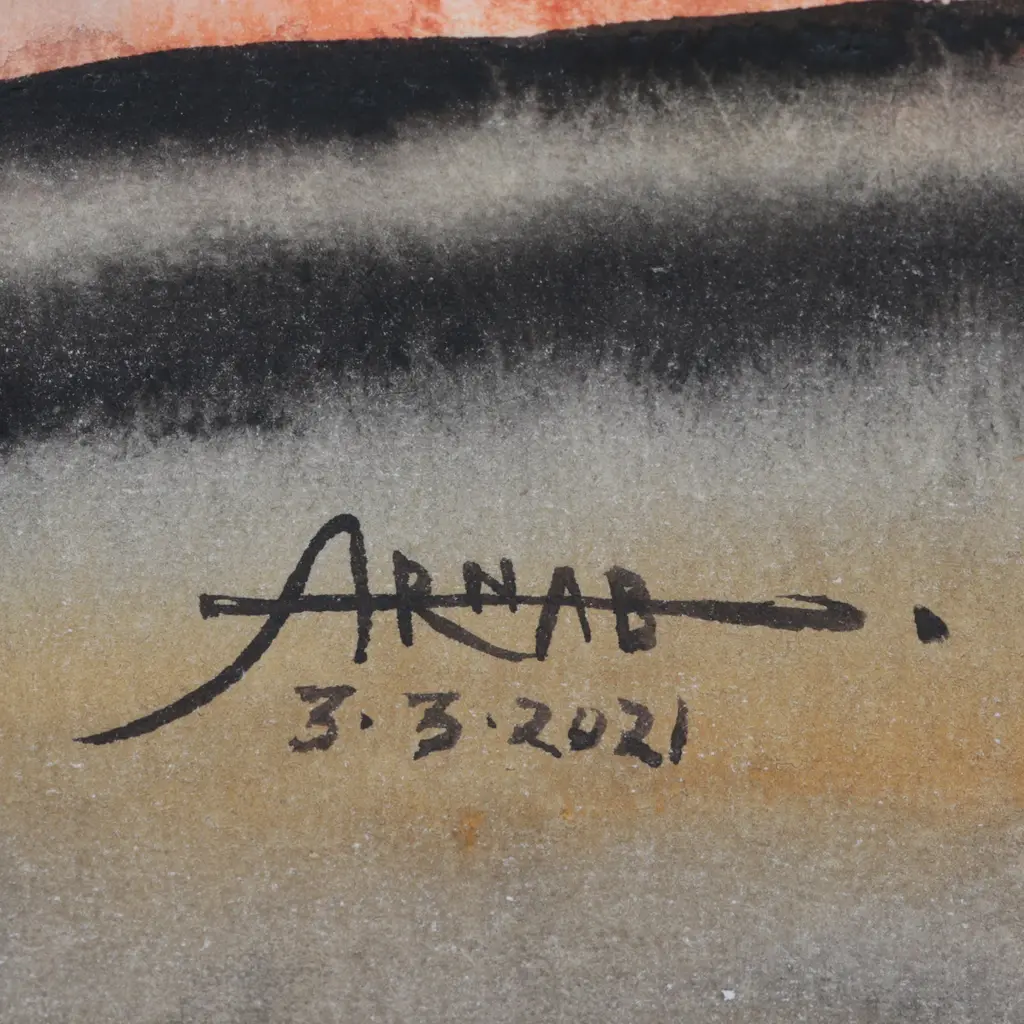 Using thin layers of blue, orange and brown, Arnab Das paints the Mahananda River in India, an important tributary to the Ganges. Sketching the river at the break of dawn, Arnab deftly executes the placid scene with washes of watercolor on handmade paper.