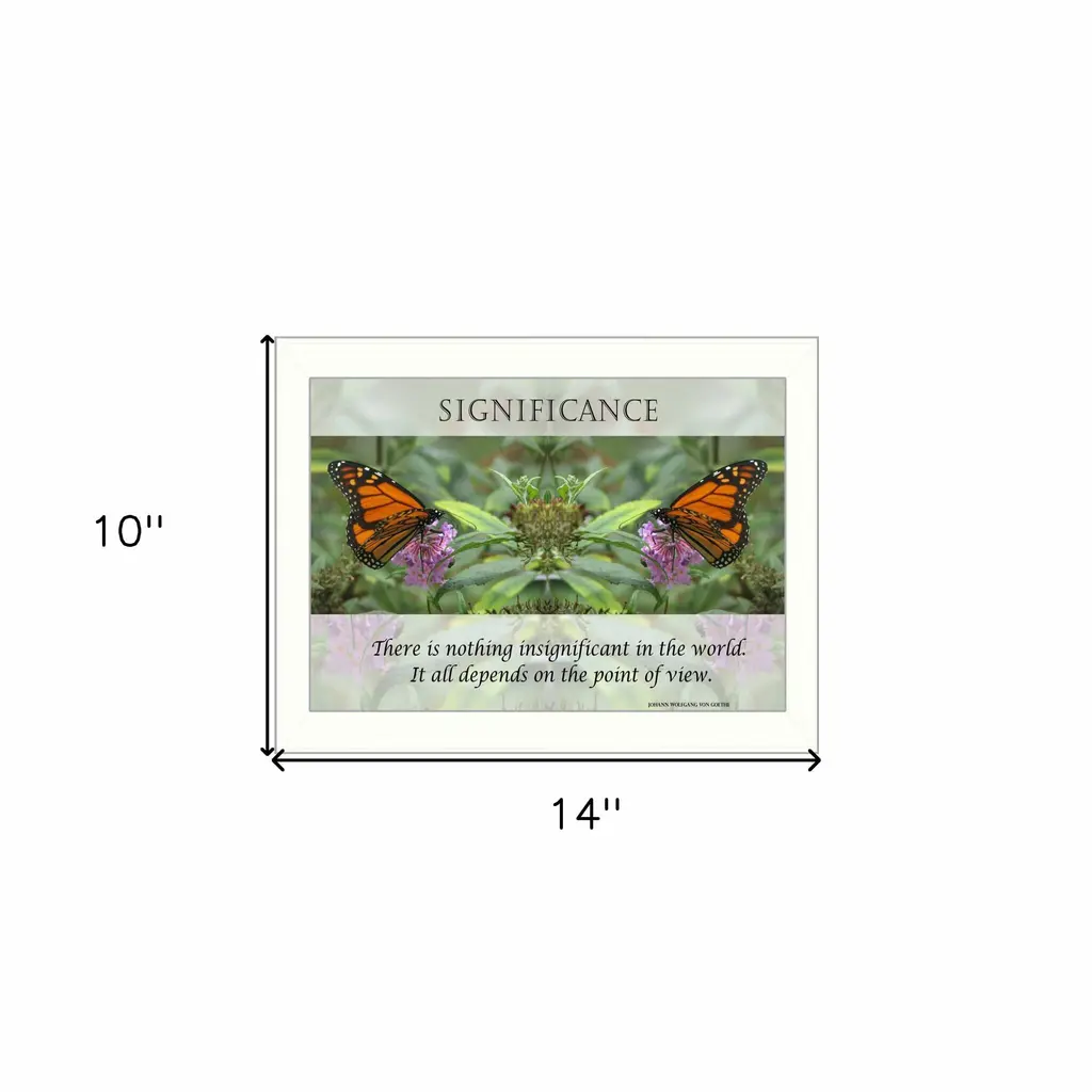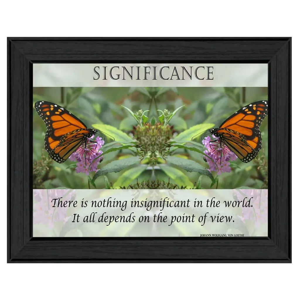 The significance 5 black framed print wall art is the perfect decorative accessory for your home. This butterfly inspired art will be a great addition to your space. This print is a visual artistic expression that allows you to decorate your space in style. Reproduced for you on paper, this hanging decorative accent will be a trendy and fashionable way to dress your walls. Adding this hanging wall art to your space to make your room feel more finished and attractive. Instantly liven up your space with this art that brings color and dimension to your walls. 18" H x 14" W x 1.5" D