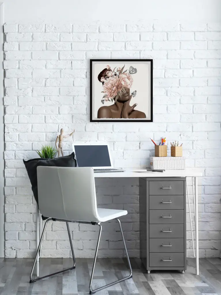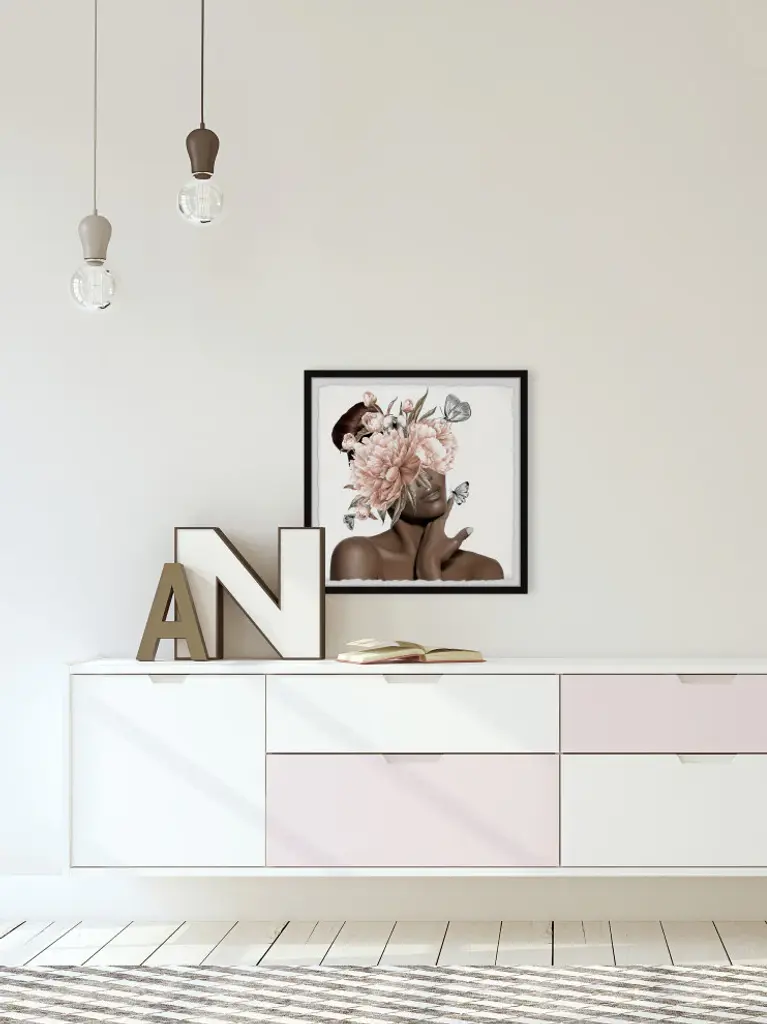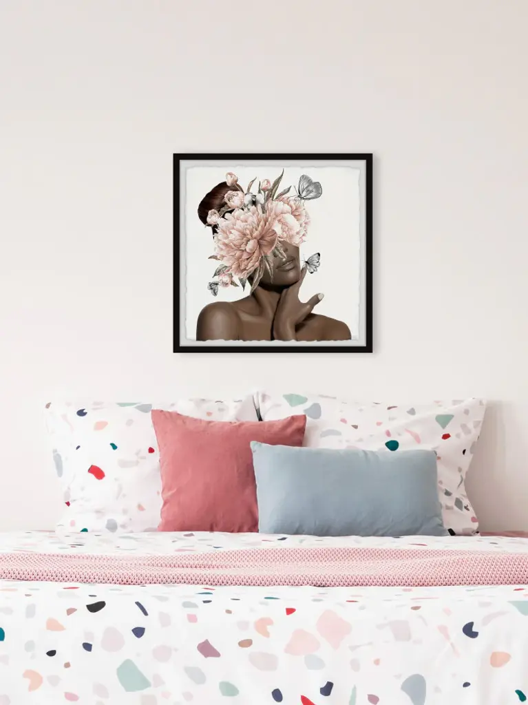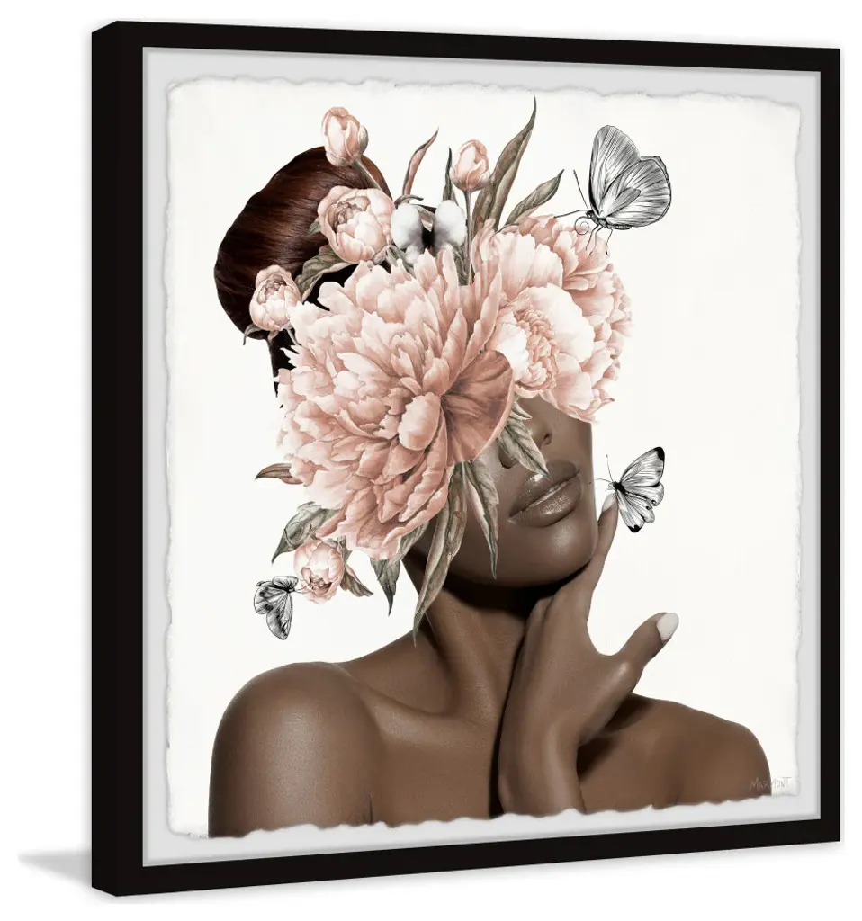 This soft, brilliant photographic print features a woman with pale pink flowers blooming and overlapping her face. Proudly printed in the USA, this piece is printed on high quality archive paper and professionally hand-framed. With wall-mounting hooks included, this artful accent is ready to hang up as soon as it reaches your front door.- Top quality Giclee print on high resolution Archive Paper- Hand cut deckled edges- High quality durable non-warping frame- Finished under shatter resistant plexiglass- Arrives ready to hang- Includes a certificate of authenticity- Printed in the USA