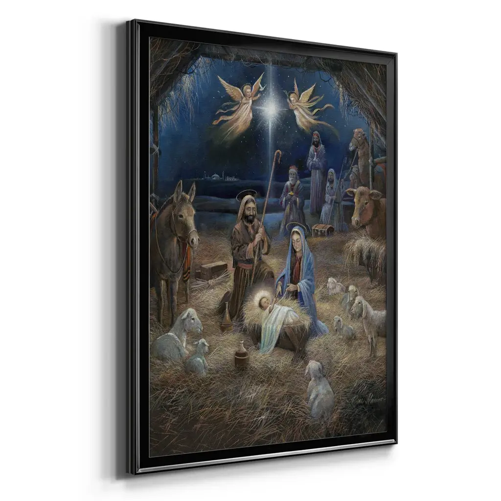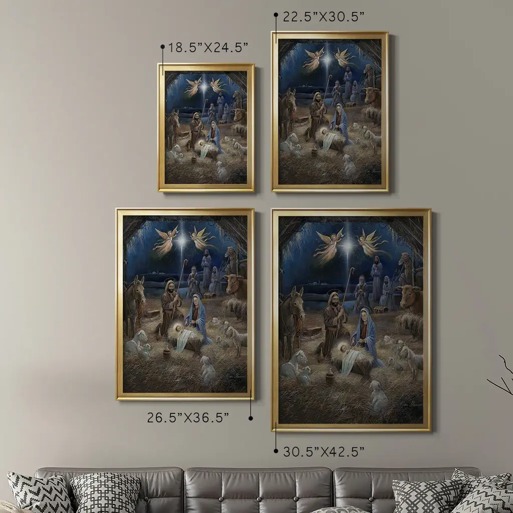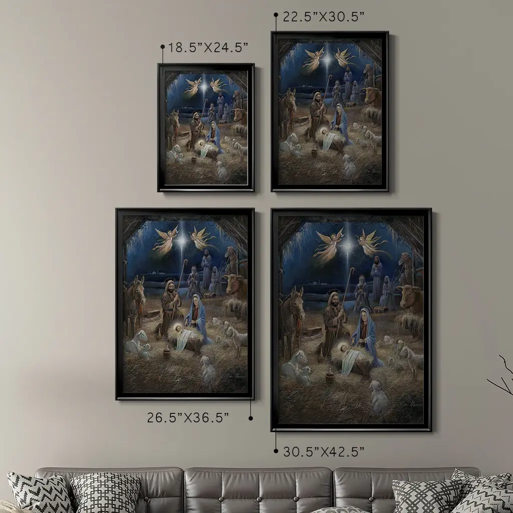 Silent Night Premium Framed Print - Ready to Hang A Premium Framed Print created to last. Framed in distressed wood and available in an array of sizes and colors Featuring a beveled a solid wood stretcher bar, each piece comes ready to hand 4 SIZES AVAILABLE 30.5''X42.5'' - Overall Size 26.5'X36.5'' - Overall Size 22.5''x30.5'' - Overall Size 18.5''x24.5'' - Overall Size Each piece is made to order. Each piece comes with hanging hardware. Made in the USA Ready to Hang