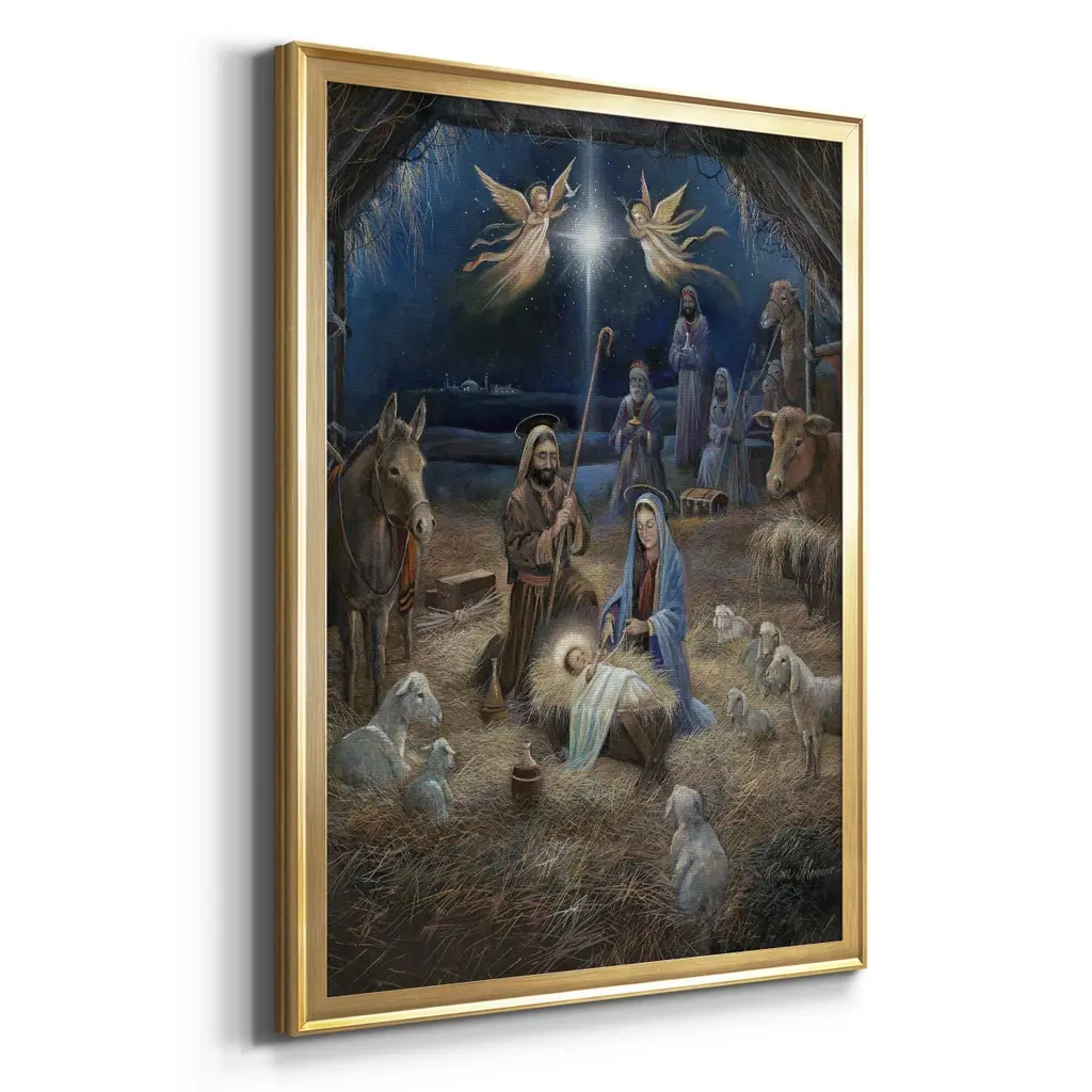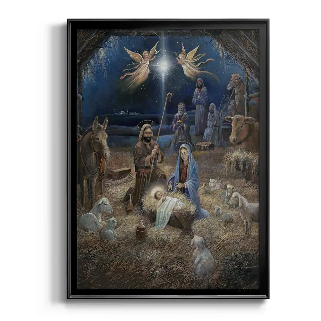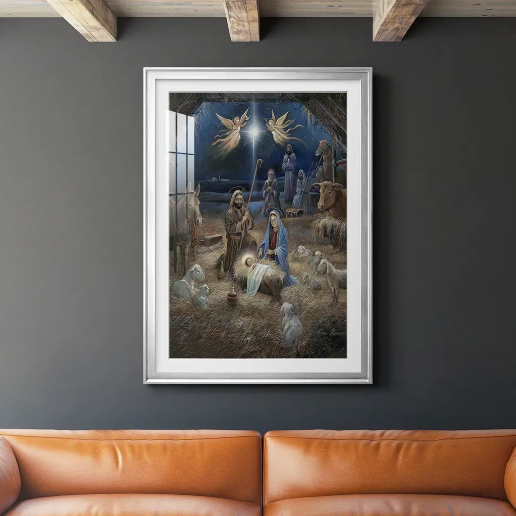 Silent Night Premium Framed Print - Ready to Hang A Premium Framed Print created to last. Framed in distressed wood and available in an array of sizes and colors Featuring a beveled a solid wood stretcher bar, each piece comes ready to hand 4 SIZES AVAILABLE 30.5''X42.5'' - Overall Size 26.5'X36.5'' - Overall Size 22.5''x30.5'' - Overall Size 18.5''x24.5'' - Overall Size Each piece is made to order. Each piece comes with hanging hardware. Made in the USA Ready to Hang