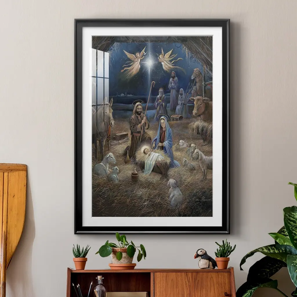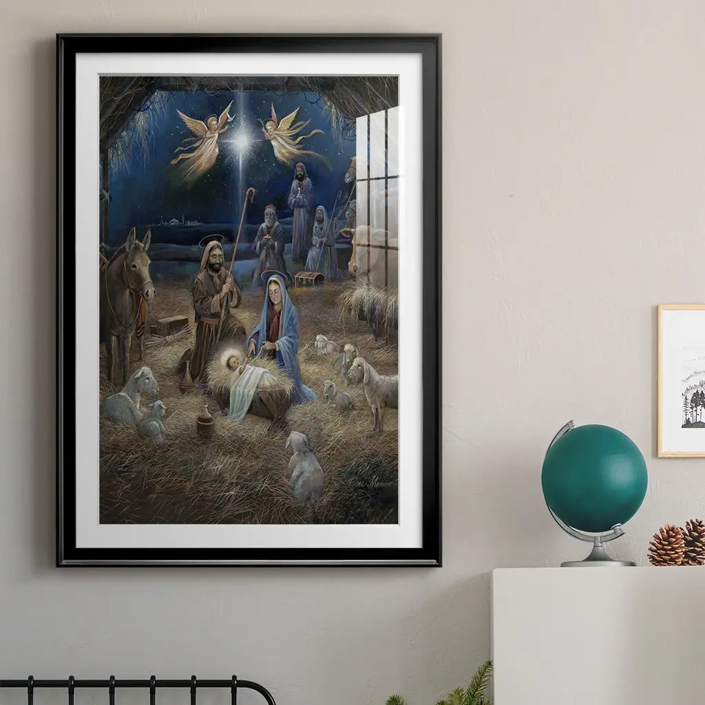 Silent Night Premium Framed Print - Ready to Hang A Premium Framed Print created to last. Framed in distressed wood and available in an array of sizes and colors Featuring a beveled a solid wood stretcher bar, each piece comes ready to hand 4 SIZES AVAILABLE 30.5''X42.5'' - Overall Size 26.5'X36.5'' - Overall Size 22.5''x30.5'' - Overall Size 18.5''x24.5'' - Overall Size Each piece is made to order. Each piece comes with hanging hardware. Made in the USA Ready to Hang Giclee Paper Print Acrylic Glass Beveled Matt Board