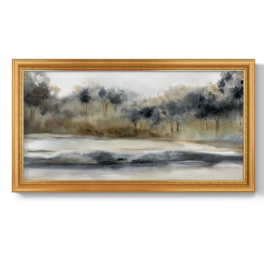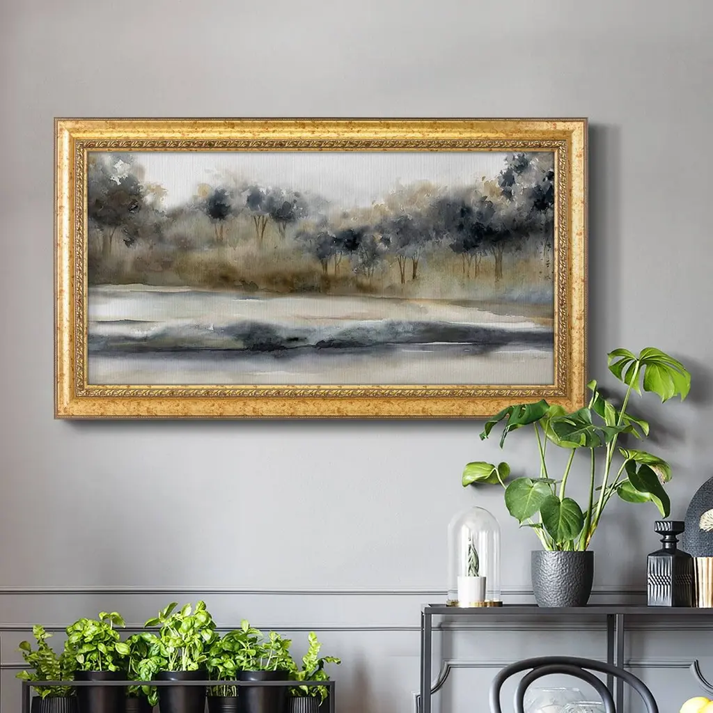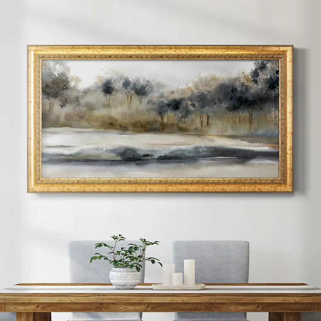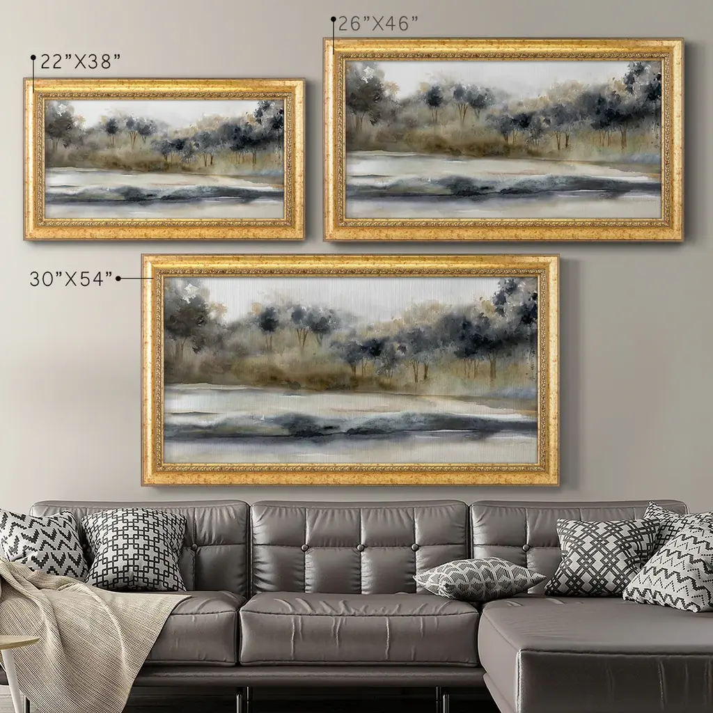Silent River Premium Framed Canvas- Ready to Hang A Premium Framed Canvas created to last. Framed in distressed wood and available in an array of sizes and colors Featuring a beveled a solid wood stretcher bar, each piece comes ready to hand 3 SIZES AVAILABLE 21''X37'' - Overall Size 25''X45'' - Overall Size 29''x53'' - Overall Size Each piece is made to order. Each piece comes with hanging hardware. Made in the USA Ready to Hang Giclee Paper Print Acrylic Glass Beveled Matt Board