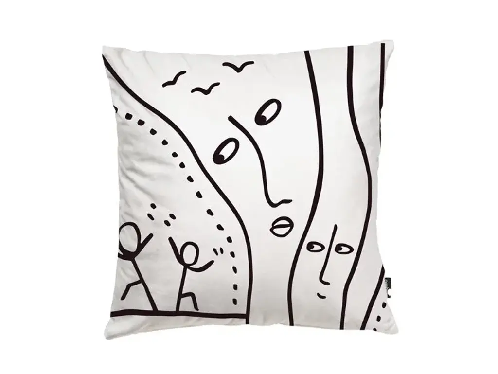 Shantell Martin is excited to collaborate with Qeeboo to bring this thoughtfully designed collection to collectors and homes. With each thoughtfully designed piece, this collection is a vibrant expression of art intertwining with daily life—an invitation for enthusiasts and collectors alike to embrace the transformative power of design.Linescapes collection includes a series of poufs, cushions and carpets all characterised by lines, texts and stylized drawings in black and white, a recurring language that Shantell uses in her artwork.The cushions are characterized by a distinctive black and white graphic on both sides. Silent Shadows, Who are you, Energetic expressions, Orbit odes and Peaceful place will turn living spaces into an artsy environment.