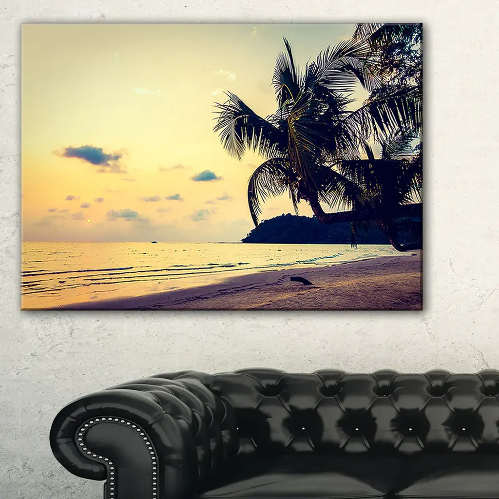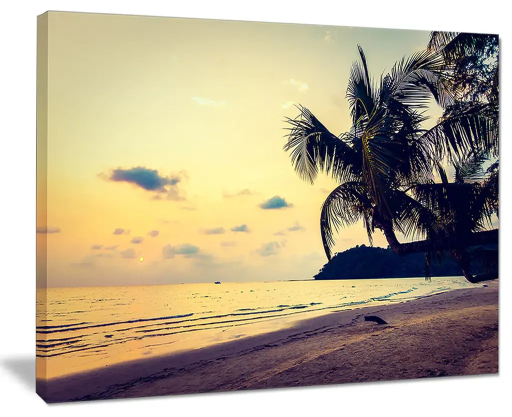 The Silhouette Coconut Tree canvas art print is sure to make an impression on anyone who sees it. This artwork is gallery wrapped around a 1-inch solid wood frame and arrives carefully packaged and entirely ready to hang on the wall. Design Art only uses the highest resolution and pigments to ensure a crisp colorful print that is never faded or pixelated. This artwork is sure to be a conversation starter in any home or office.