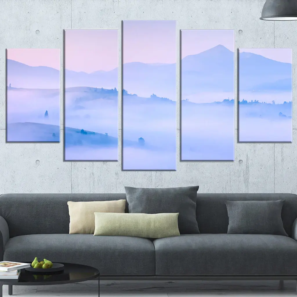 "Silhouettes Of Morning Mountains" Landscape Photo Wall Art, 5 Panels, 60"x32"