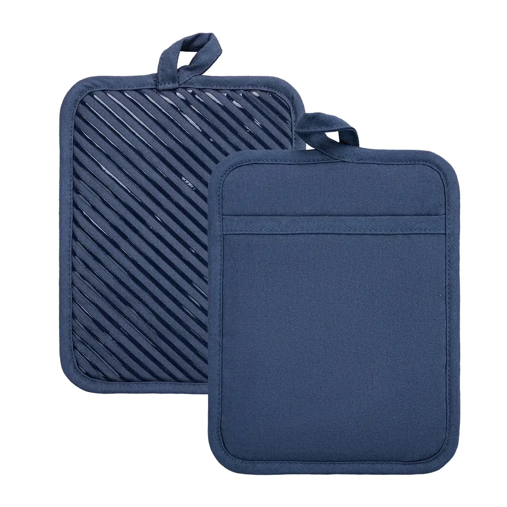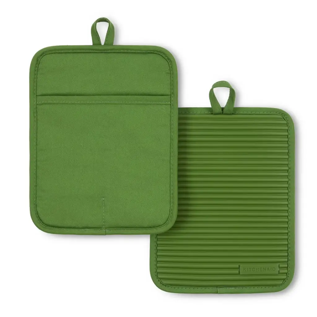 The Signature Silicone Potholders (set of 2) are a versatile and reliable kitchen accessory designed to withstand extreme temperatures, making them an essential tool for cooking enthusiasts. These potholders boast an impressive heat resistance, capable of handling temperatures up to 500 degrees Fahrenheit. Whether you're baking, grilling, or dealing with steam, these potholders provide a robust barrier against the intense heat, ensuring your hands remain protected. The non-slip and non-toxic textured silicone surface of these potholders is a standout feature. This textured grip not only ensures a secure hold on various kitchen items but also provides stability when dealing with hot or slick surfaces. Whether you're lifting a steaming pot or maneuvering a slippery baking dish, the potholders offer a reliable grip that minimizes the risk of accidents in the kitchen. In summary, the Signature Silicone Potholders are a high-quality kitchen essential, offering an impressive temperature resistance range, non-slip grip, and long-lasting durability.