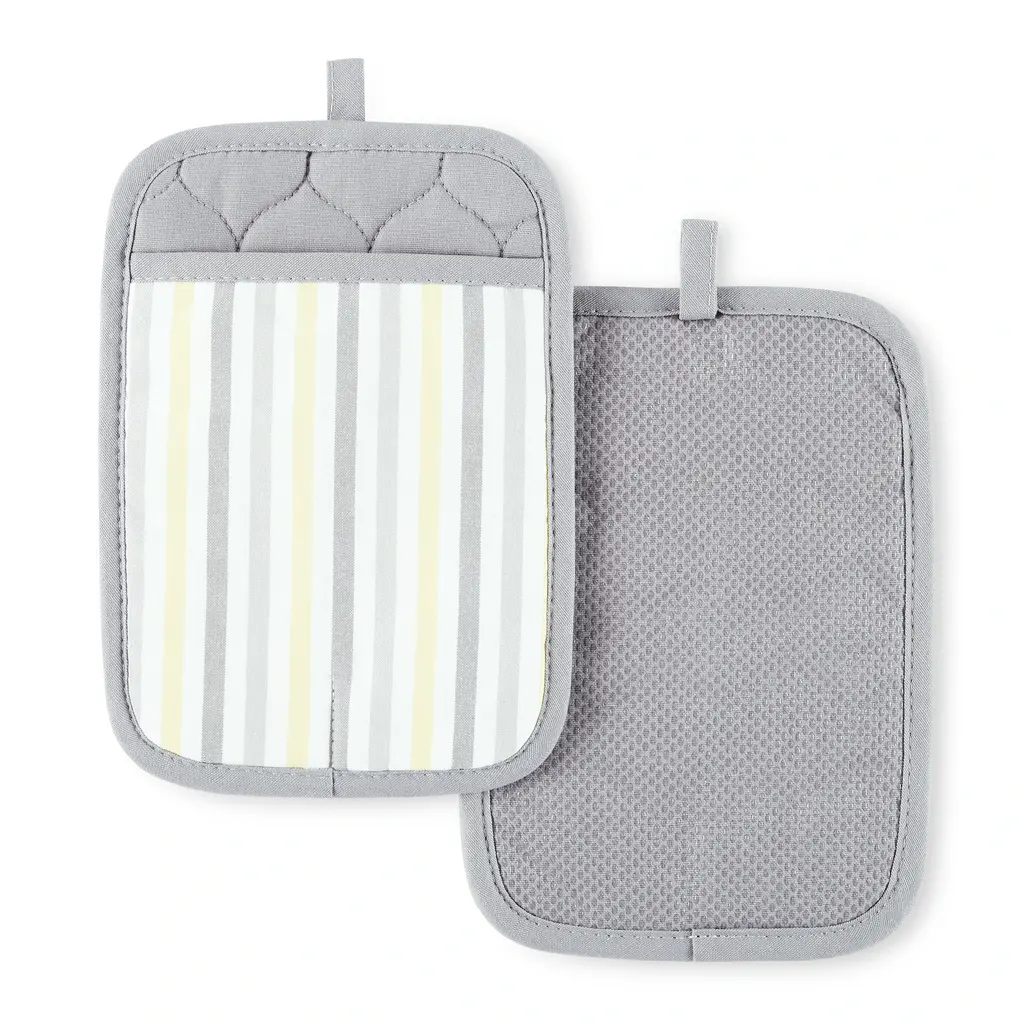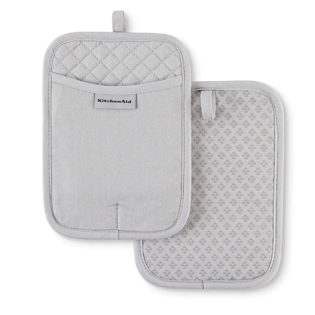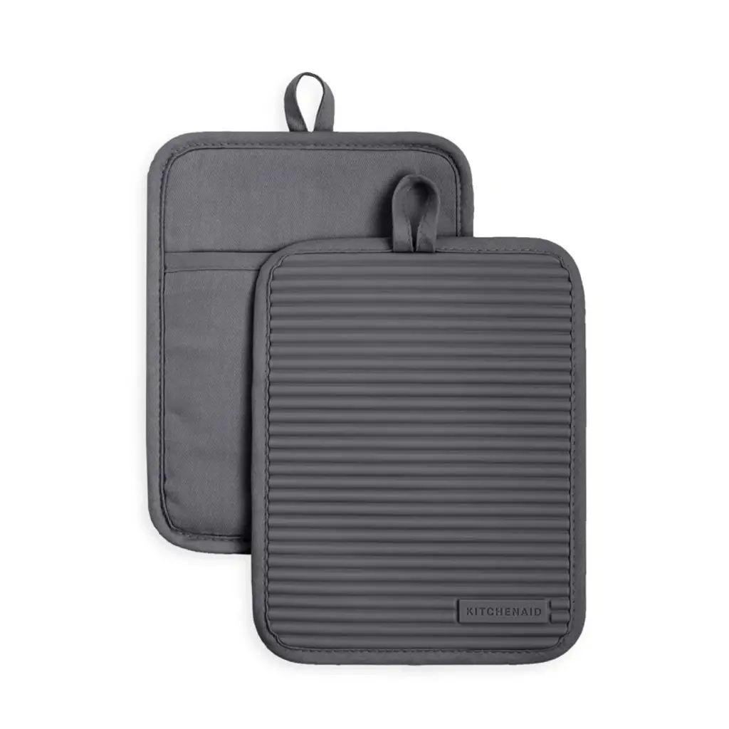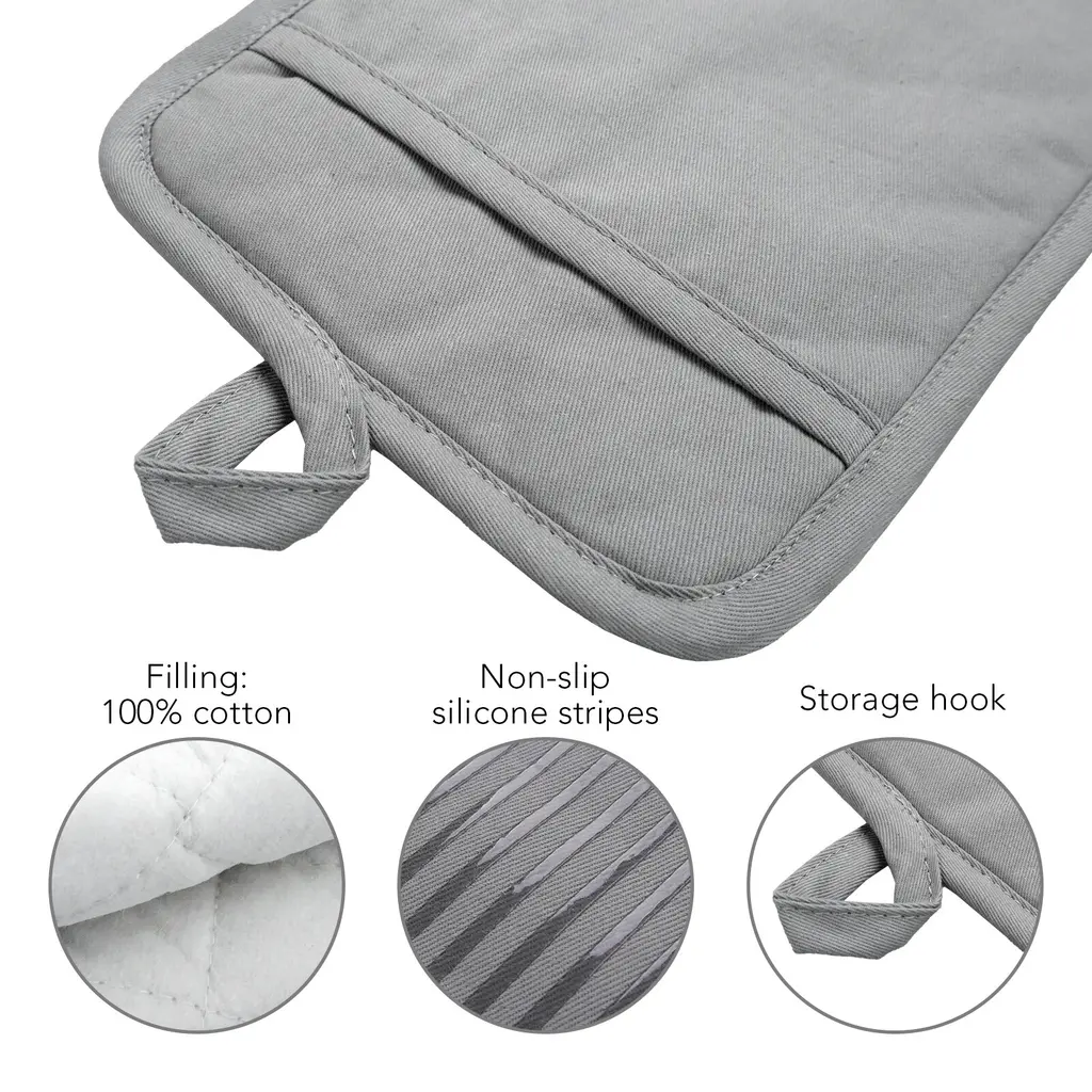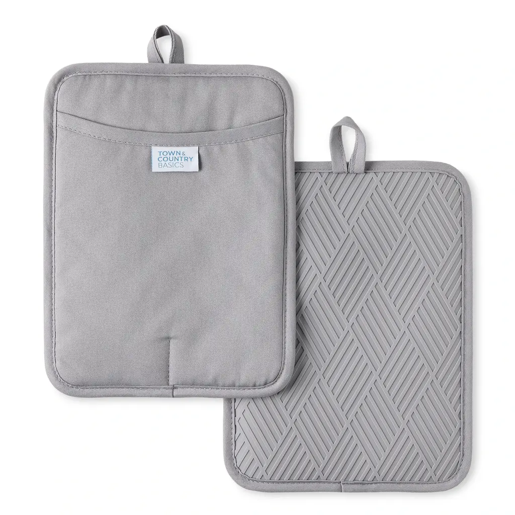 The Signature Silicone Potholders (set of 2) are a versatile and reliable kitchen accessory designed to withstand extreme temperatures, making them an essential tool for cooking enthusiasts. These potholders boast an impressive heat resistance, capable of handling temperatures up to 500 degrees Fahrenheit. Whether you're baking, grilling, or dealing with steam, these potholders provide a robust barrier against the intense heat, ensuring your hands remain protected. The non-slip and non-toxic textured silicone surface of these potholders is a standout feature. This textured grip not only ensures a secure hold on various kitchen items but also provides stability when dealing with hot or slick surfaces. Whether you're lifting a steaming pot or maneuvering a slippery baking dish, the potholders offer a reliable grip that minimizes the risk of accidents in the kitchen. In summary, the Signature Silicone Potholders are a high-quality kitchen essential, offering an impressive temperature resistance range, non-slip grip, and long-lasting durability.