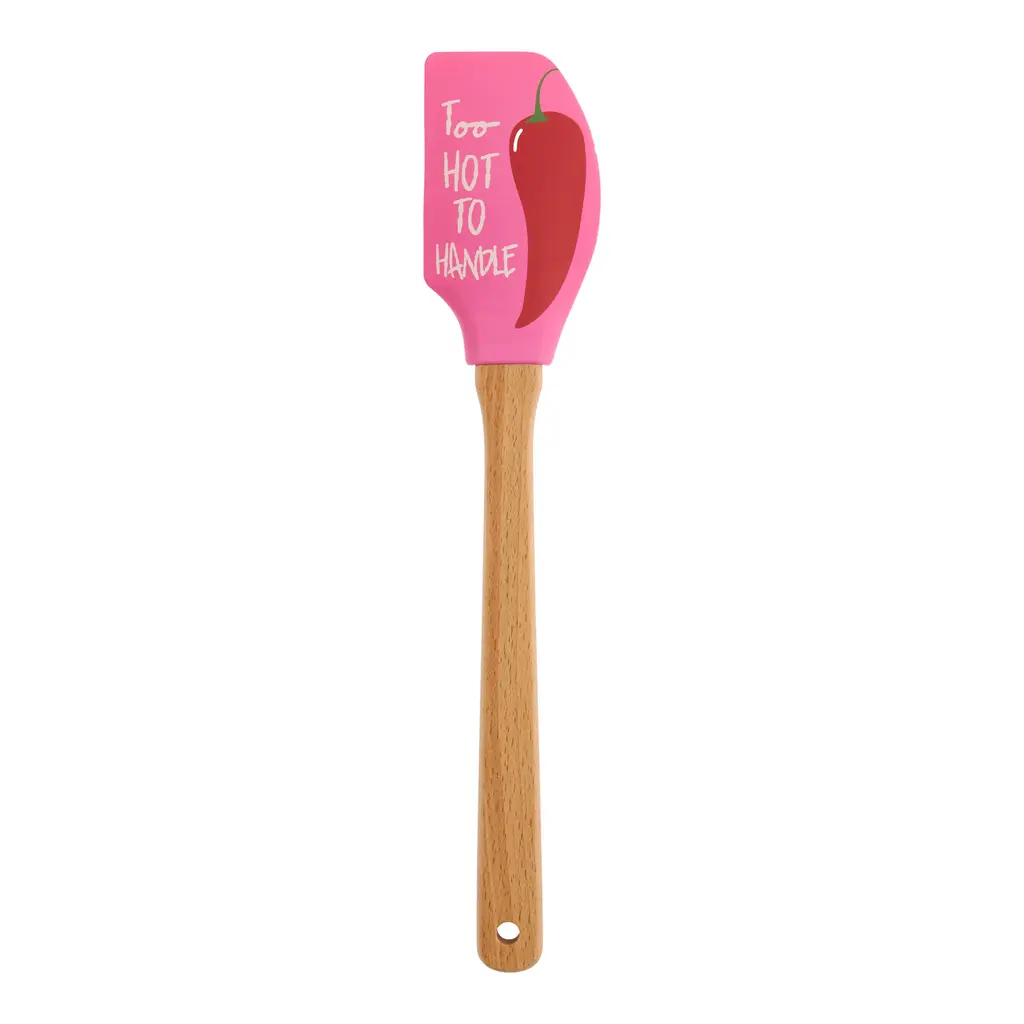 This nicely priced kitchen gift set includes two spatulas and a silicone baking mat decorated with our spirited holiday artwork. The wood-handled spatulas come in two sizes, the smaller with a bright plaid print and the larger with our cheeky "Fa La Freakin' La" lettering. The nonstick-silicone oven mat is adorned with holiday bows that add a sweet backdrop to baked treats. These useful tools brighten the Christmas kitchen all season long.
