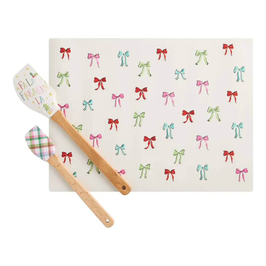 Silicone Holiday Bow Baking Mat And Spatulas 3 Piece Set