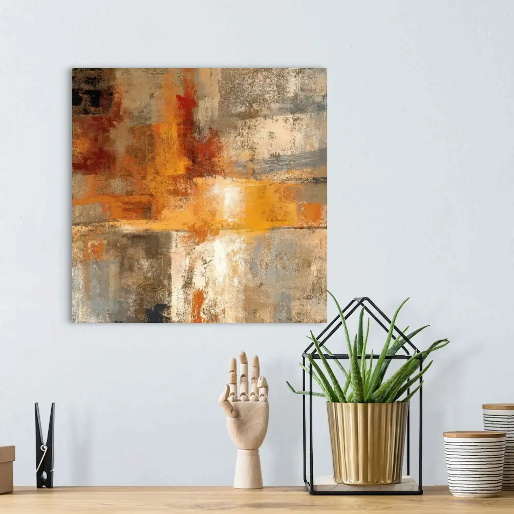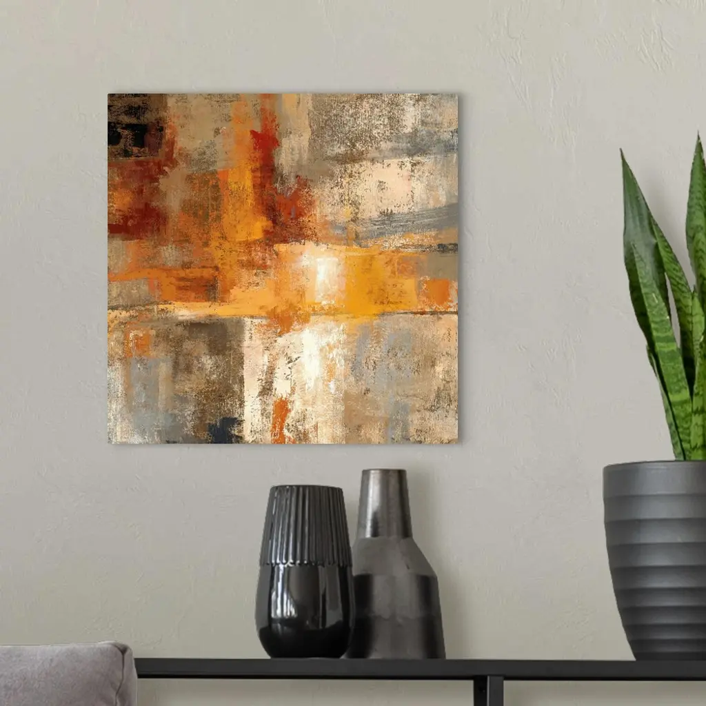 Contemporary abstract painting of multiple colors overlapping with distressed and eroded areas.