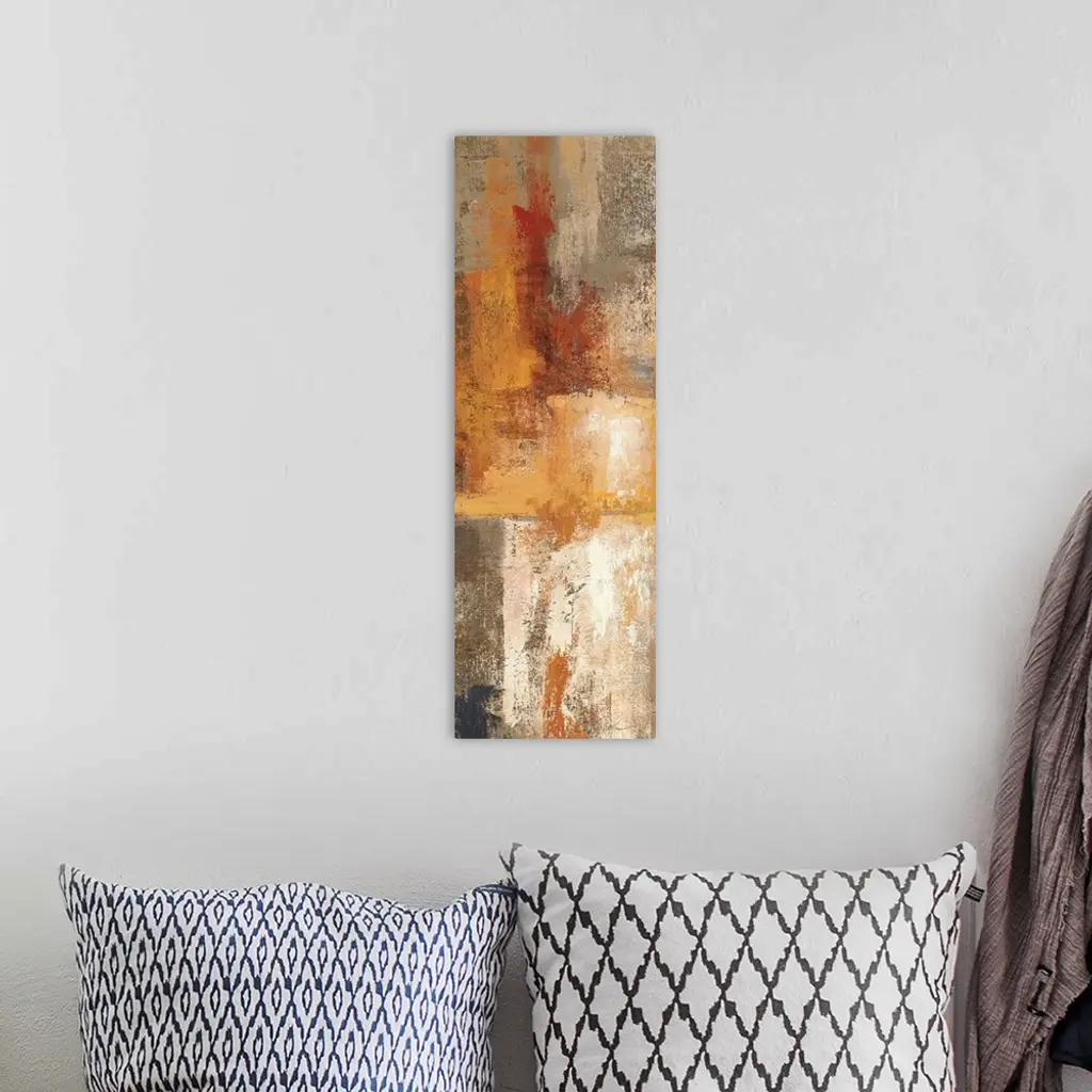 An abstract piece of art with brush strokes of earthy tones giving the painting depth.