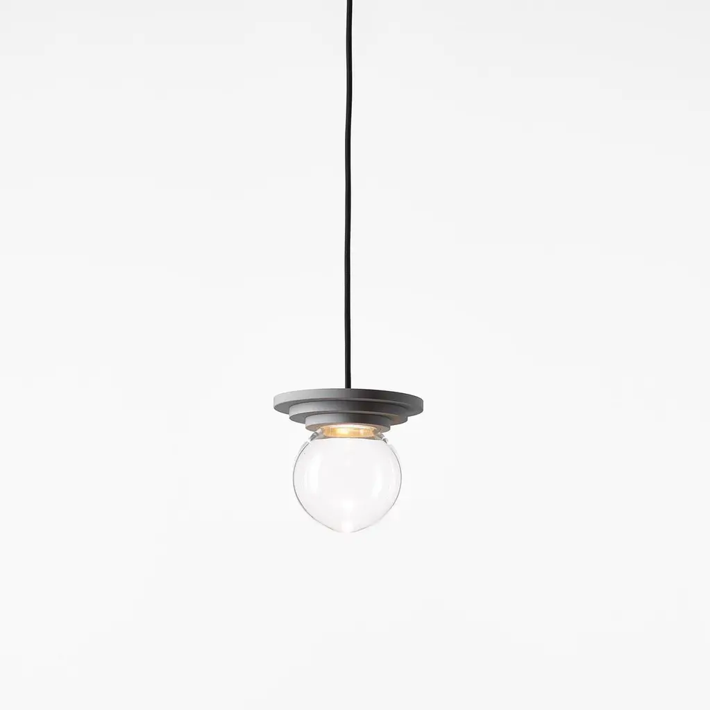 Silver and Clear Stratos Mini Ball Pendant Light by Dechem StudioDimensions: D 12 x H 14 cmMaterials: Aluminum, Glass.Also Available: Different colours available.Different shapes of capsules and spheres contrast with anodized alloy fixtures, creating a surprising architectural element. The luminaires are available in various colours including crystal clear, smoke grey, alabaster white, pink, green and orange.Glass, just like people or trees, is perfectly capable of being shaped and formed. One can imprint just about anything into it, give it a form, capture a passing moment, breath a new life into it. Later it stiffens and freezes like a petrified fossil, like magma, like a witness. No one can move it. It is solid as a rock and if you urge it, it rather shatters into pieces than to surrender.We are DECHEM.We are Michaela and Jakub, designers and storytellers in Bohemian glass. Our work is based on contemporary design combined with a mastery of production and a healthy respect for old Central European craft and traditions.We design, produce and sell our collections of lights and decorative glass products. We produce unique light fixtures made from a combination of mouth-blown glass and handcrafted brass. Our glamorous chandeliers light up any space with a playful yet elegant appearance.A significant component of our work is blowing glass into a colour gradient. The wide range of fresh gradient colours is a distinctive feature of the Bandaska vase from our collection. It draws inspiration from traditional milk containers, well-known in Czech village households, and their elegant lines are now coming into modern homes in the form of our glass vases and lights.In addition to our normal production, we love to devise bespoke luminous objects for interiors. They arise from experimenting with unconventional materials and unusual combinations.Along with our own work, we like to be part of special collaborations and exhibitions. We have collaborated with renowned galleries and institutions, and curated and exhibited projects in Milano, London, Frankfurt, Istanbul and several other cities around the world.All of our creations are manufactured with care in Czech workshops using unique methods, including hand-blowing, snapping, cutting, grinding, firing, engraving and glass painting.We founded DECHEM studio in Prague in 2012 as partners in both work and life after years of studying glass craft and design, and we have grown it into a renowned and award-winning design studio.