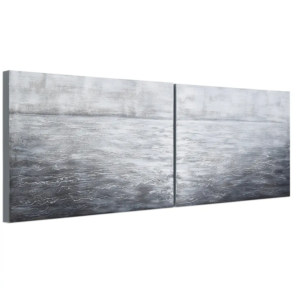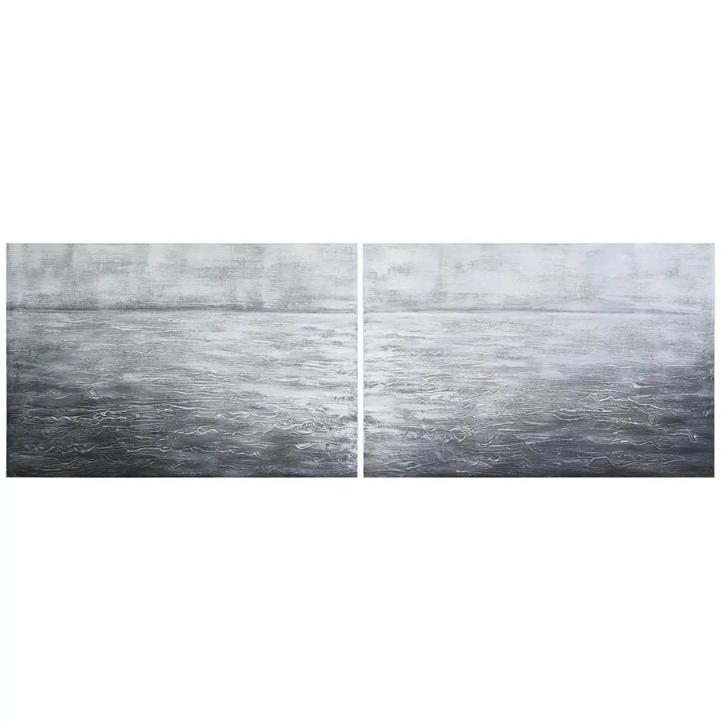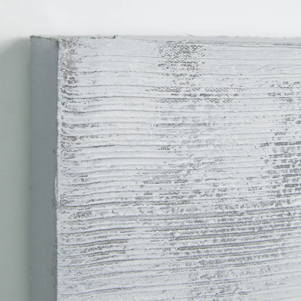 Silver Light Textured Metallic Hand Painted Canvas Wall Art Set Of 2 - Wood - Natural