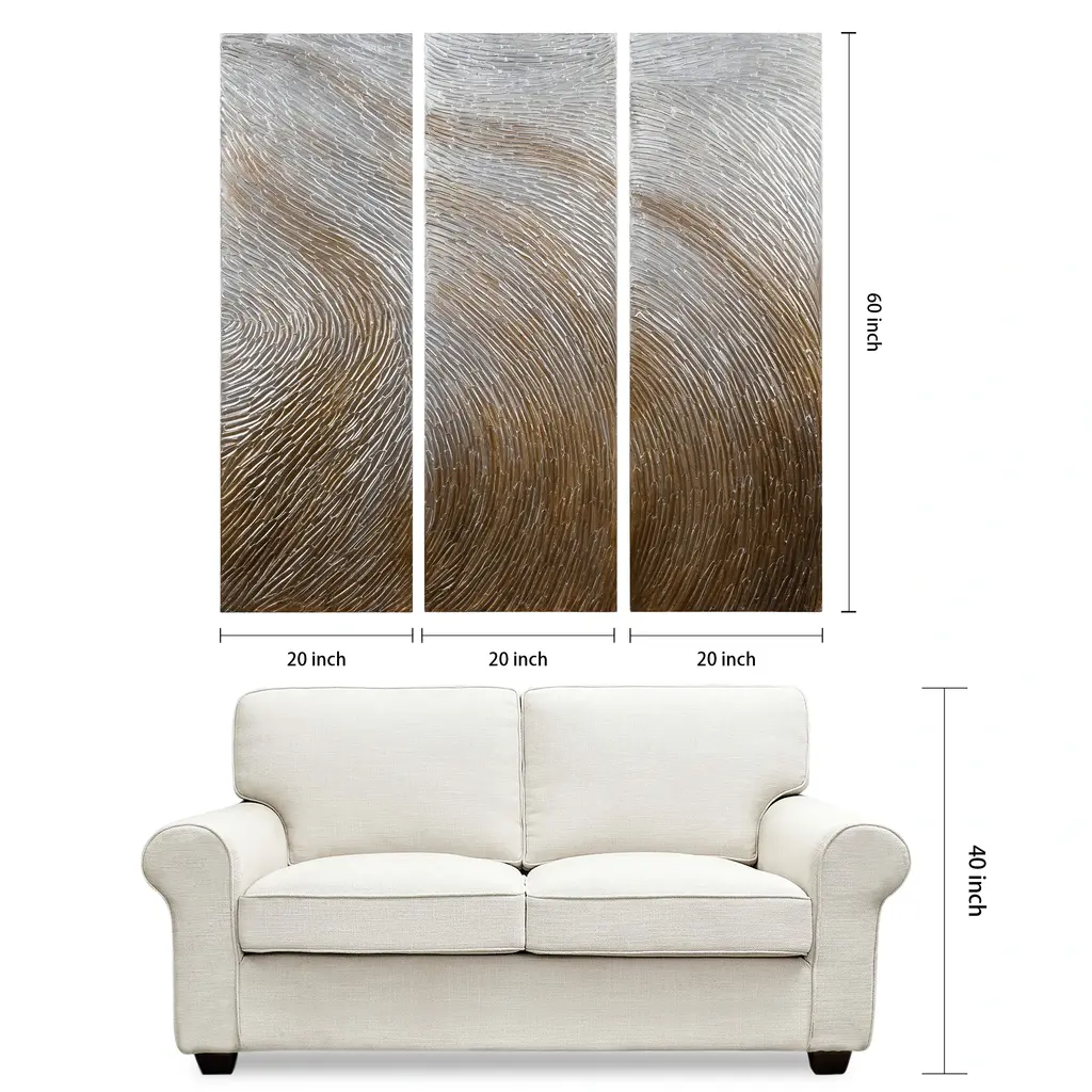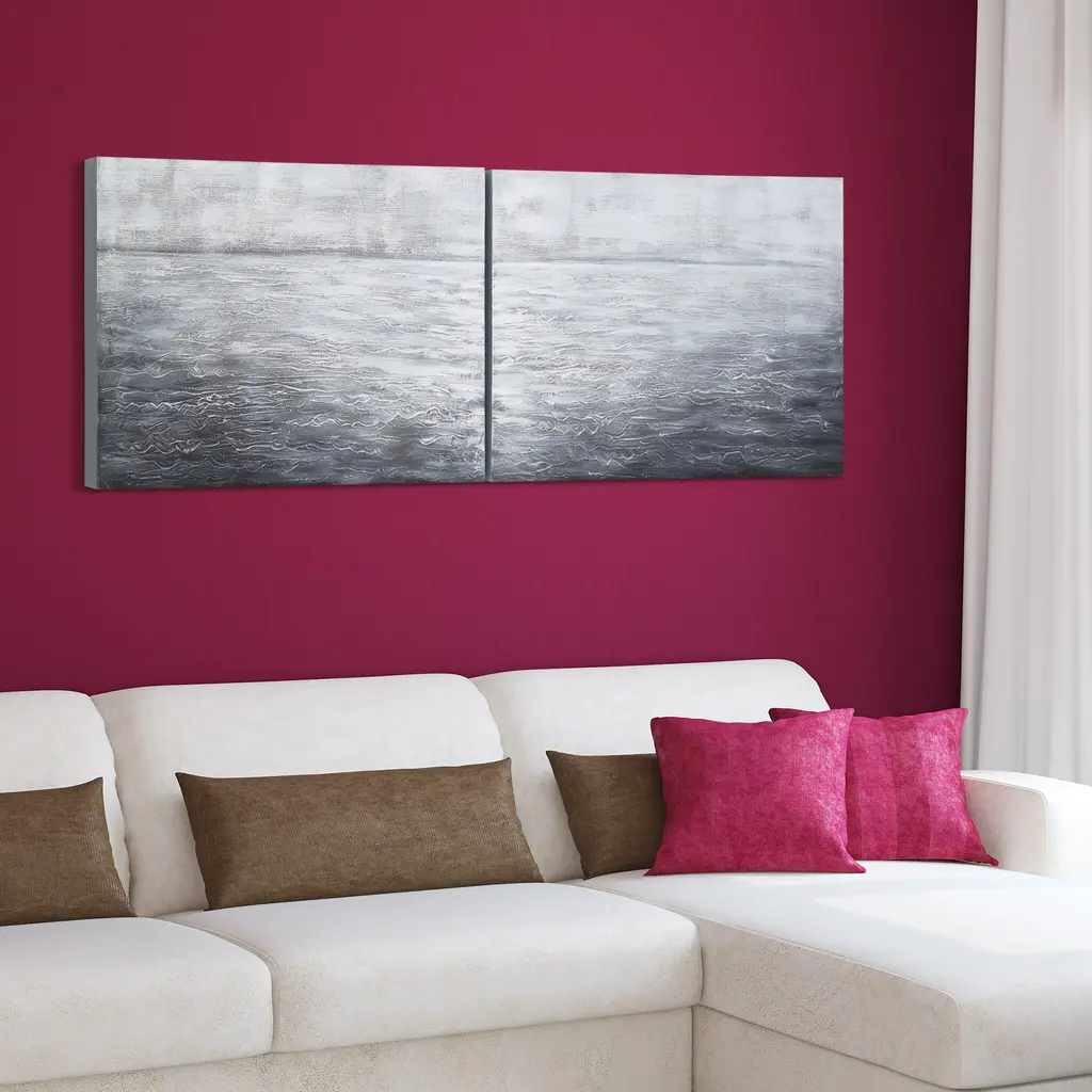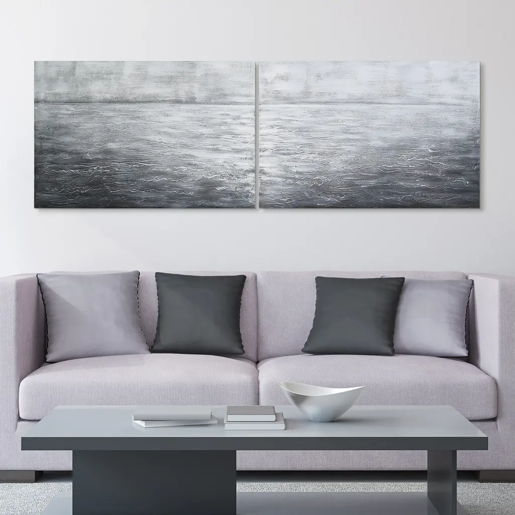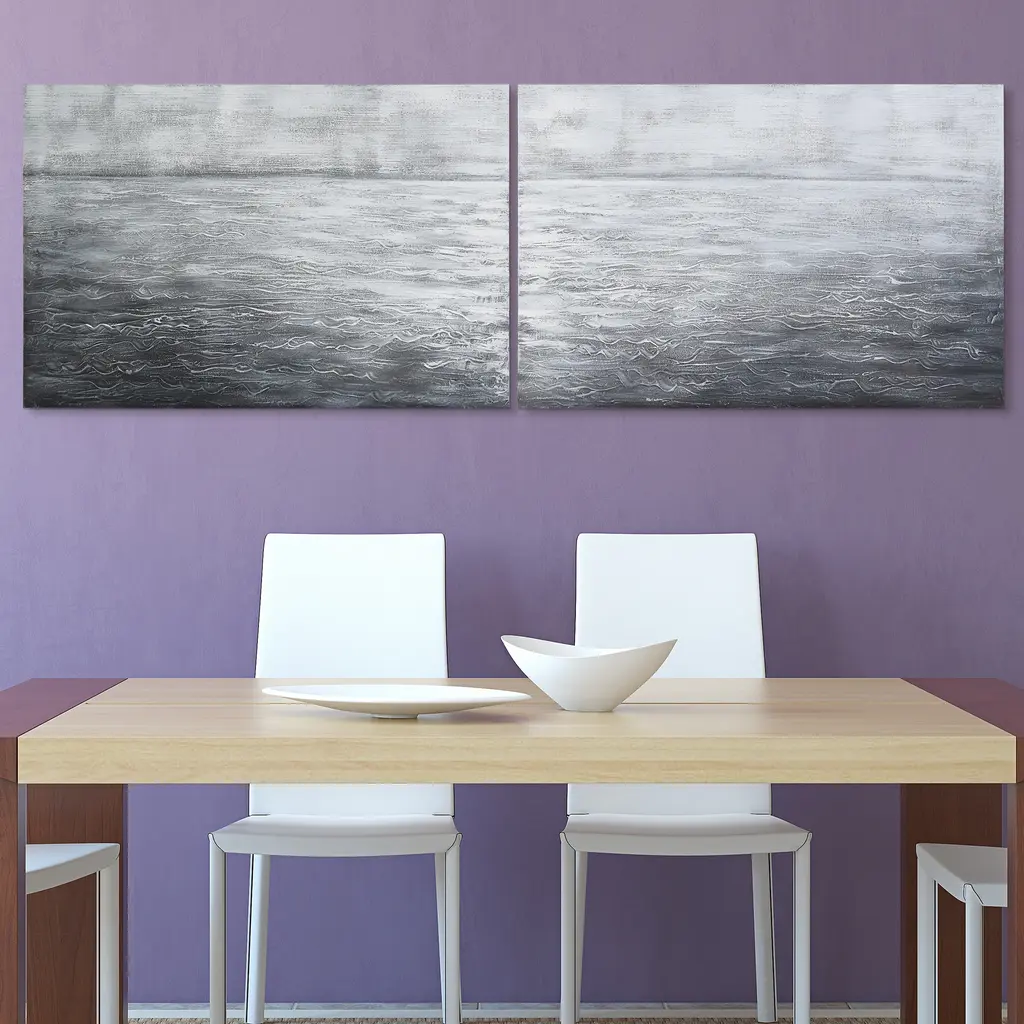 Silver Light Textured Metallic Hand Painted Canvas Wall Art Set Of 2 - Wood - Natural