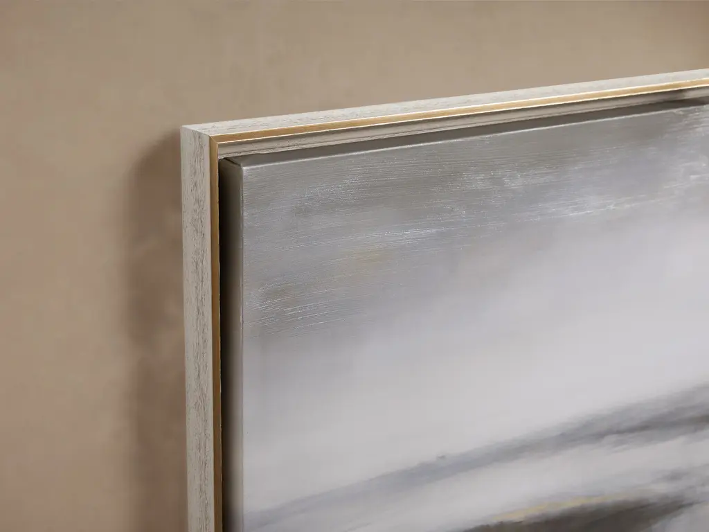 Inspired by artists of the early 1900s, painter D’Alessandro Léon brings unique energy to his pieces with an intense and vibrant style. This giclee reproduction of an abstract river landscape is rendered in deep, contrasting tones accented by hand-applied silver embellishments. Giclee reproduction on canvas features hand-applied silver embellishments. Wooden frame features a whitewashed finish with gold accents. Silver River 30 x 40 hangs vertically from back-mounted wire. Artist: D’Alessandro Léon