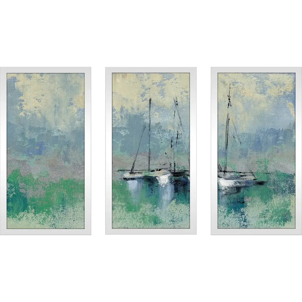 Silvia Vassileva "Boats In The Harbor Ii" Framed Plexiglass Wall Art Set Of 3 - 52.5" X 33.5"