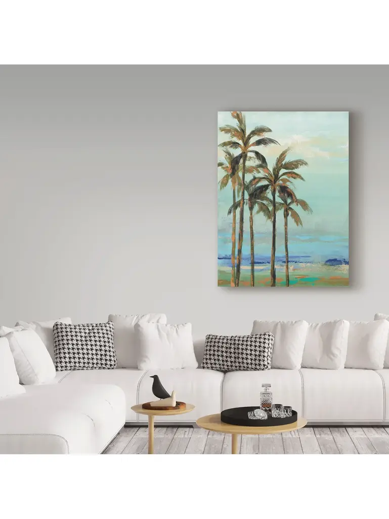 Artist: Silvia VassilevaSubject: LandscapeStyle: CoastalProduct Type: Gallery-Wrapped Canvas ArtMade in USAThis ready to hang, gallery-wrapped art piece features an abstracted painting of a group of palm trees.Silvia Vassileva pursued her love of art at the Academy of Fine Art in Bulgaria, where she earned both her bachelor's and master's degrees. She spent six years painting and exhibiting her work in Japan before moving to the U.S. Silvia describes her style as very free and bold. She makes her paintings come alive by using contrast and unusual color palettes. Silvia's home studio, which she designed herself, is bright, contemporary and minimalist.Giclee (jee-clay) is an advanced printmaking process for creating high quality fine art reproductions. The attainable excellence that Giclee printmaking affords makes the reproduction virtually indistinguishable from the original piece. The result is wide acceptance of Giclee by galleries, museums, and private collectors. Gallery wrap is a method of stretching an artist's canvas so that the canvas wraps around the sides and is secured a hidden, wooden frame. This method of stretching and preparing a canvas allows for a frameless presentation of the finished painting.Whether it's a contemporary, rustic, modern, or traditional style decor, Trademark Fine Art offers a variety of high-quality, carefully built wall art that will surely complement any style. We provide an abundance of art themes that range from fascinating abstracts to breathtaking landscapes, in an assortment of sizes that will certainly bring excitement to any area of your home. From the bedroom to the living room, or even the office, Trademark Fine Art makes professionally handcrafted, ready to hang wall decor that will be admired for years to come!IMPORTANT: Avoid buying counterfeit products and transacting with unauthorized sellers. Trademark Fine Art is committed to providing the consumer with the absolute best price and value on our entire line of products, which we ensure by applying a rigorous Quality Control process. Trademark Fine Art is a registered trademark protected by U.S. Trademark law and will be vigorously defended.The digital images we display have the most accurate color possible. However, due to differences in computer monitors, we cannot be responsible for variations in color between the actual product and your screen.