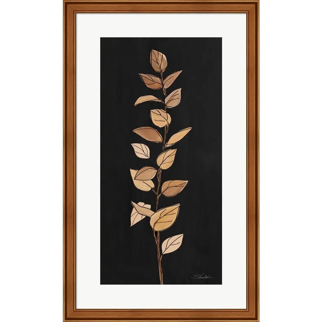 Farm Branch II on Black by Silvia Vassileva is a high quality piece of framed artwork. The finished size of this piece is 19" X 31". It has a Slim Classic Bronze with Raised Edges frame, is single matted and finished with high quality Acrylic Plexiglass. 100% Satisfaction Guaranteed.