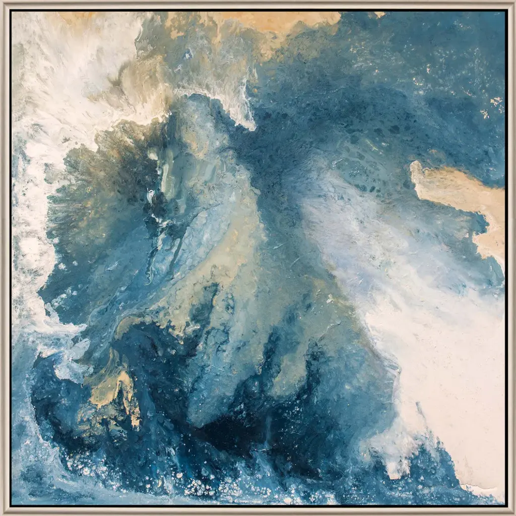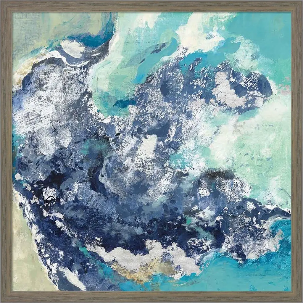 Turquoise by Silvia Vassileva is a high quality piece of framed artwork. The finished size of this piece is 19" X 19". It has a Distressed Grey Knotty Wood frame and is finished with high quality Acrylic Plexiglass. 100% Satisfaction Guaranteed.