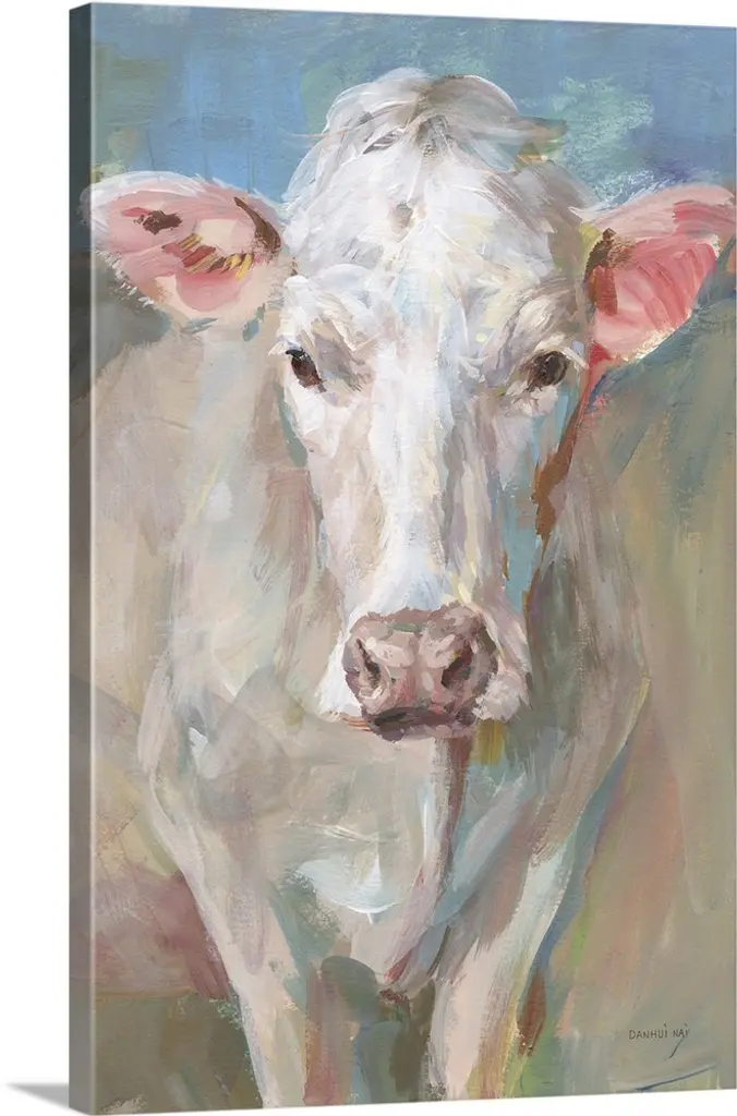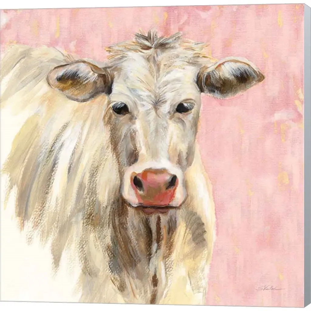 White Cow on Pink by Silvia Vassileva is a high quality piece of canvas artwork. The finished size of this piece is 24" X 24", and it has a depth 1.5" with wintergray painted sides. There is a UV protective coating over the entire image, and it is ready to hang on your wall with no hardware required. 100% Satisfaction Guaranteed.