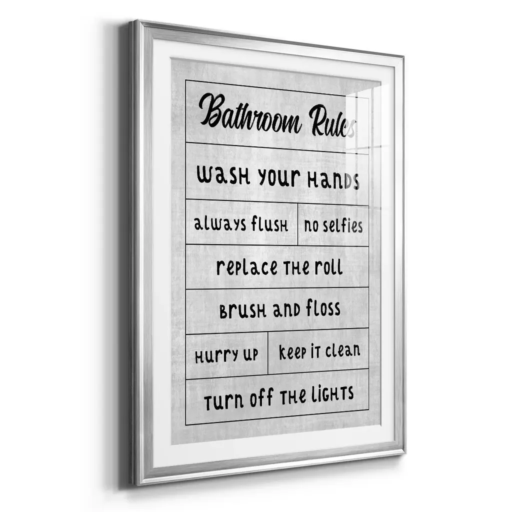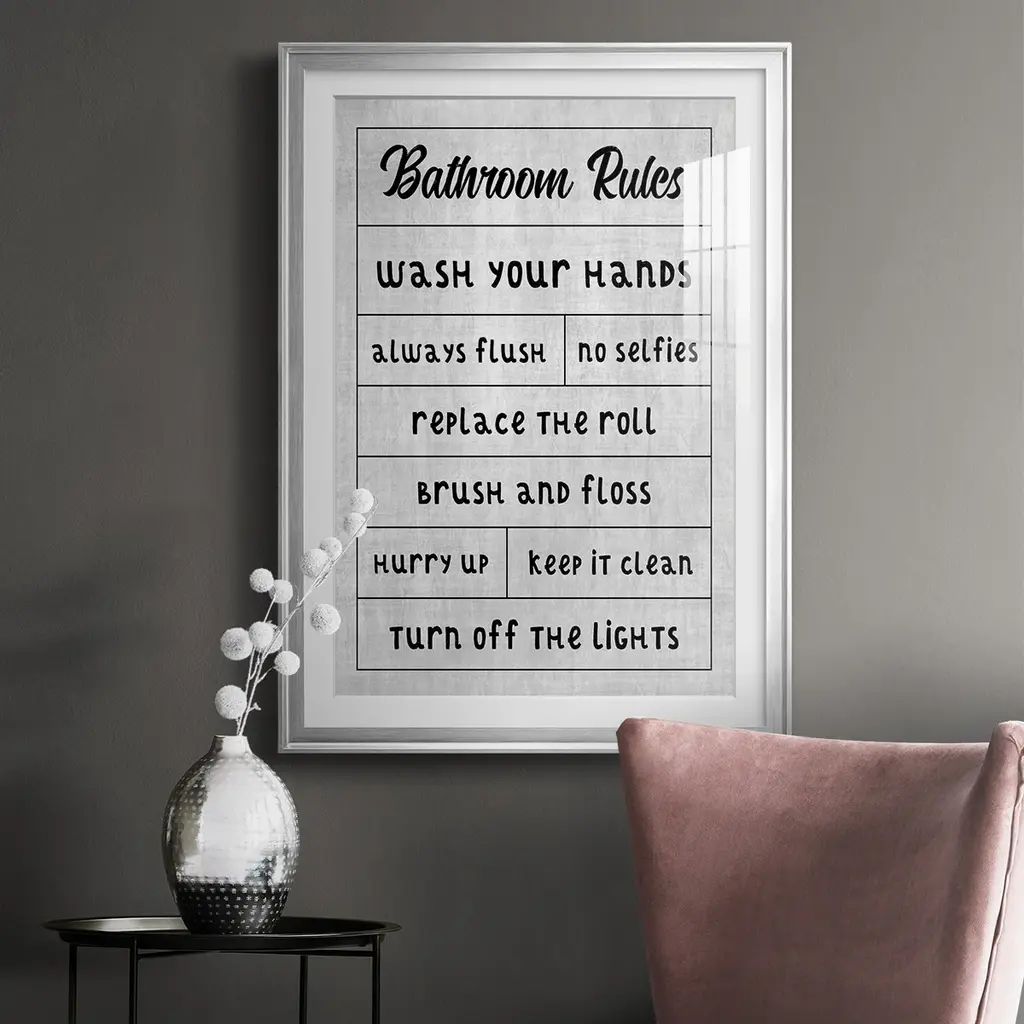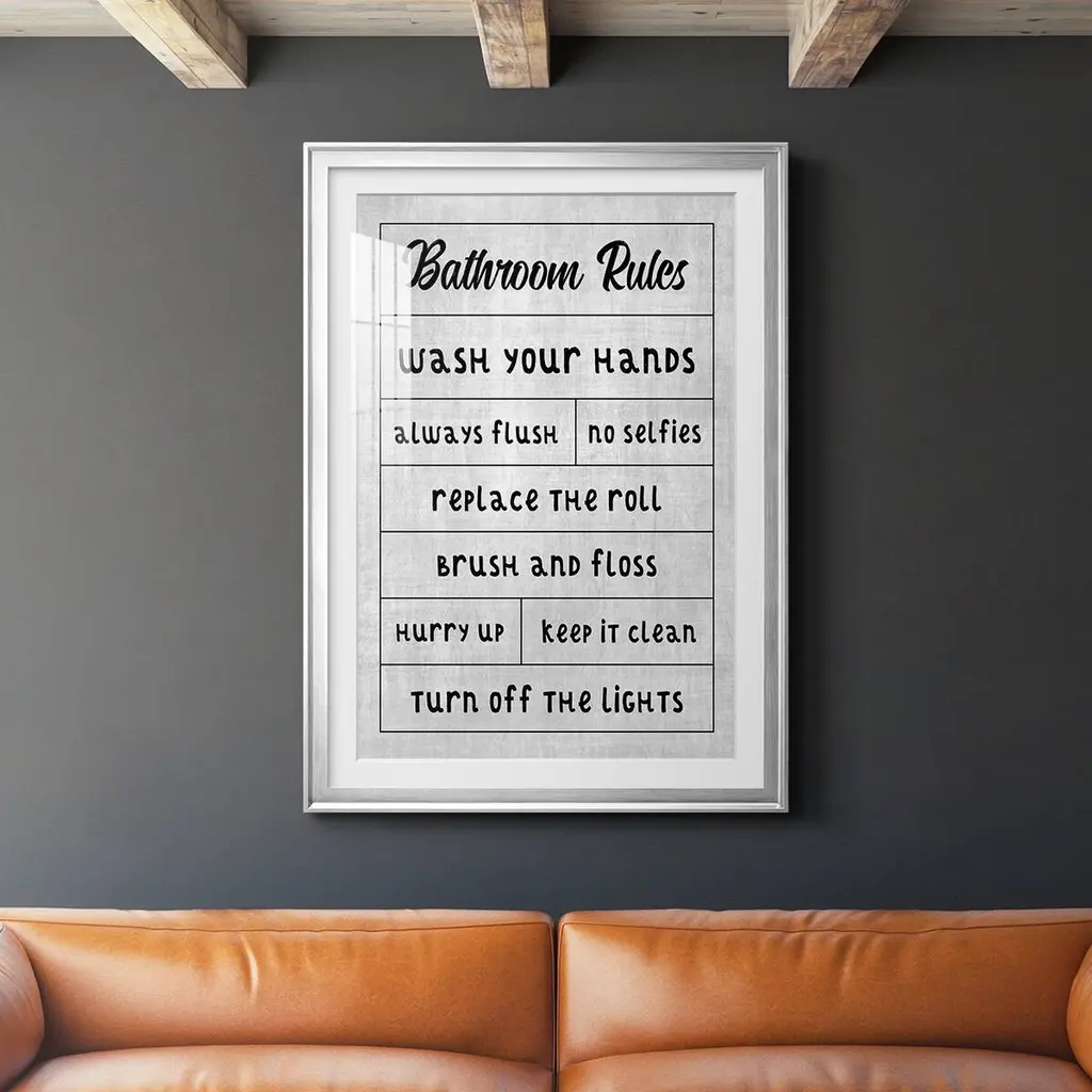 Simple Bathroom Rules Premium Framed Print - Ready To Hang - 26.5x36.5 - Silver