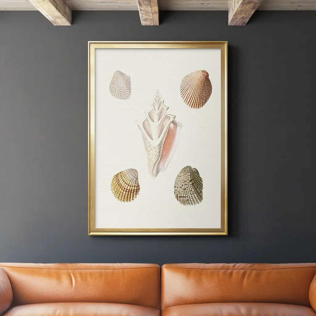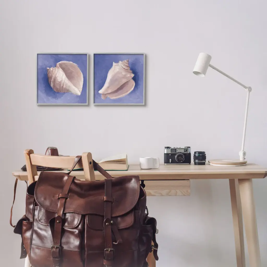 Simple Classic Seashell Conch Still Life Painting, 2Pc, Each 12 X 12