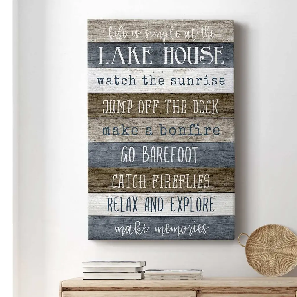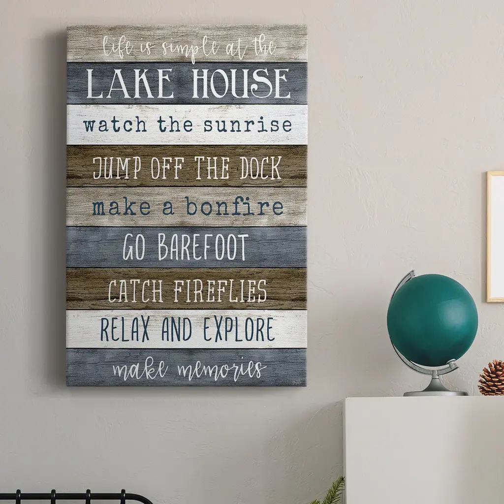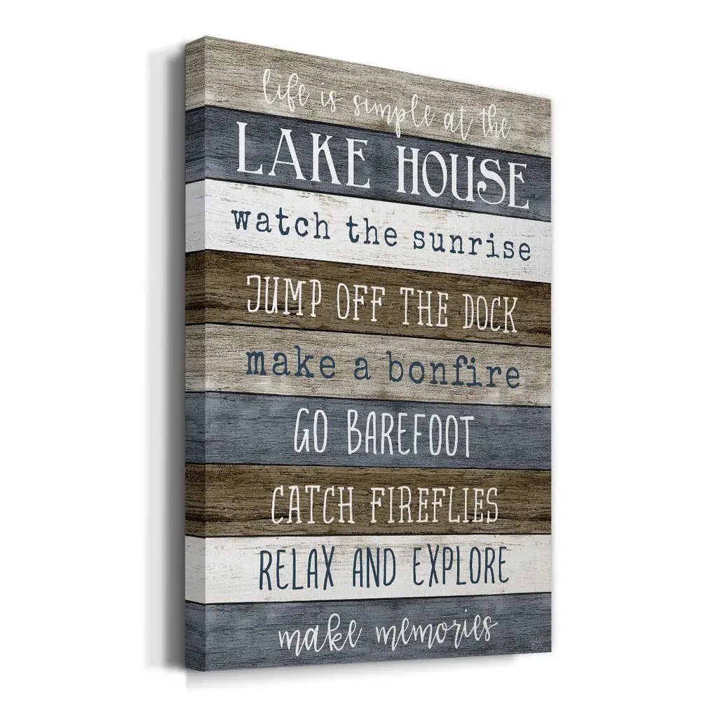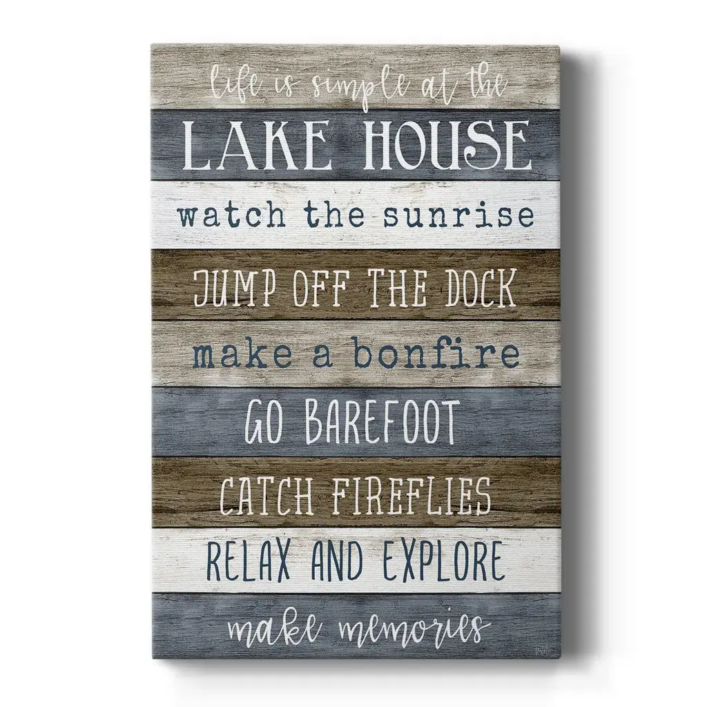 Simple Lake Rules Premium Gallery Wrapped Canvas - Ready to Hang A premium hand stretched gallery wrapped canvas print created to last. Featuring a beveled a solid wood stretcher bar, each piece comes ready to hand 6 SIZES AVAILABLE 8''X12'' - Overall Size 12''X18'' - Overall Size 18''X27'' - Overall Size 24''x36'' - Overall Size 32''x48'' - Overall Size 40''x60'' - Overall Size Each piece is made to order. Built to Last Each piece comes ready to hang Solid wood stretcher Fade and Water resistant Made domestically