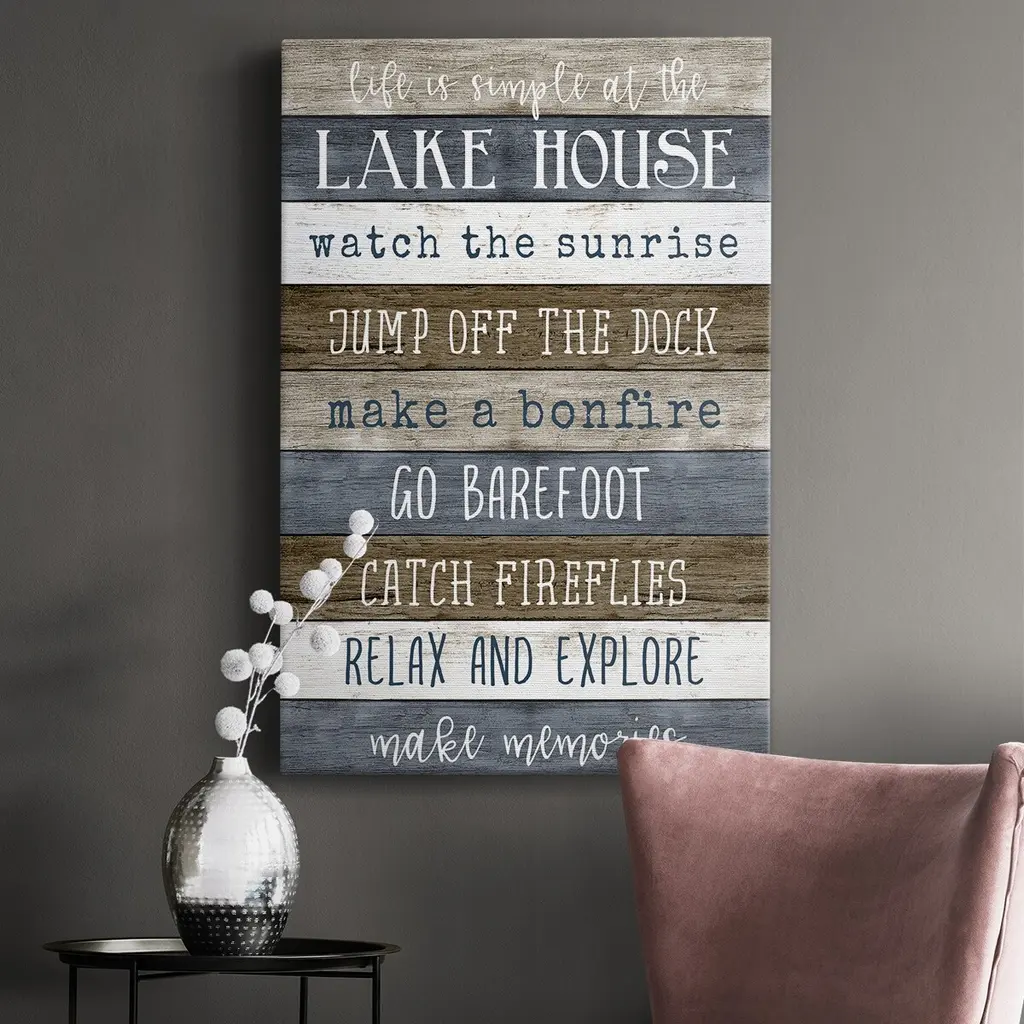 Simple Lake Rules Premium Gallery Wrapped Canvas - Ready To Hang - 40x60