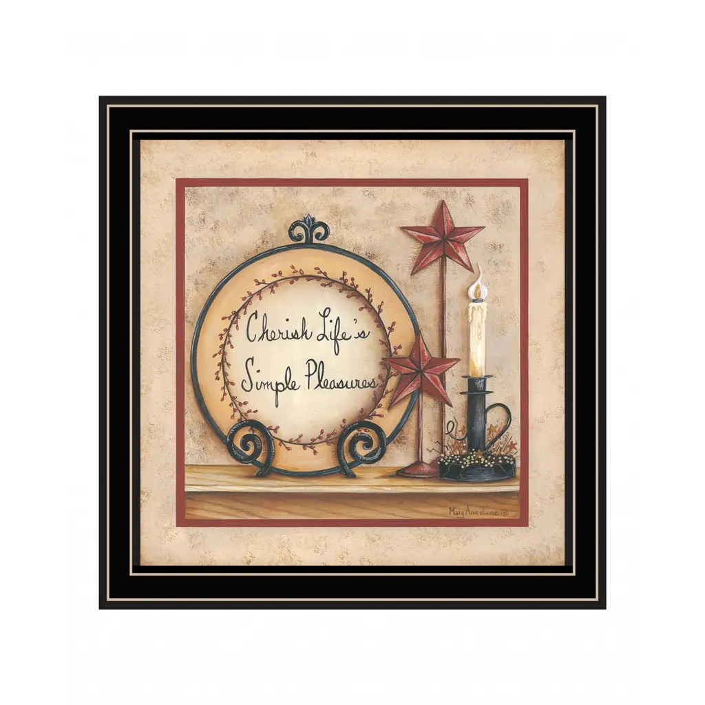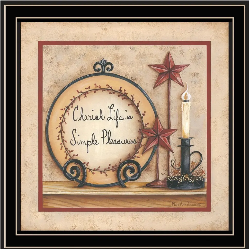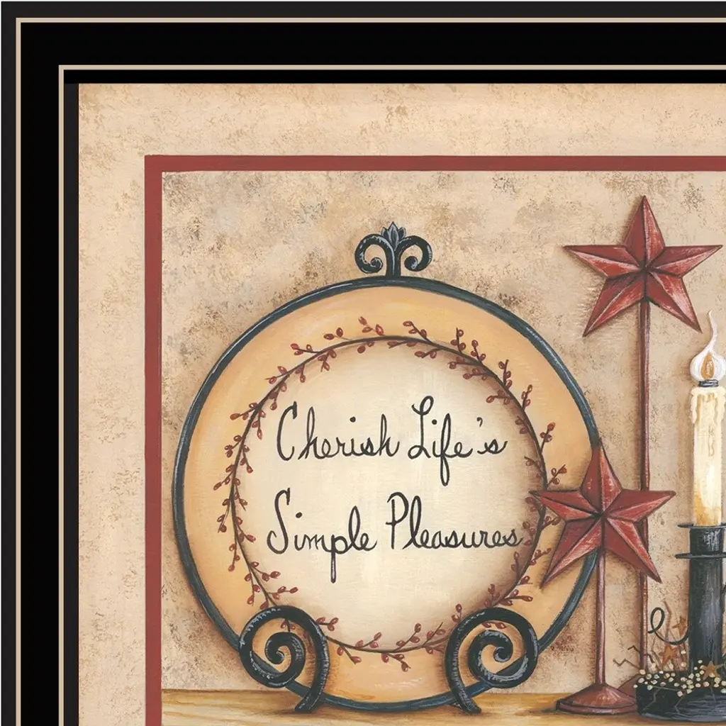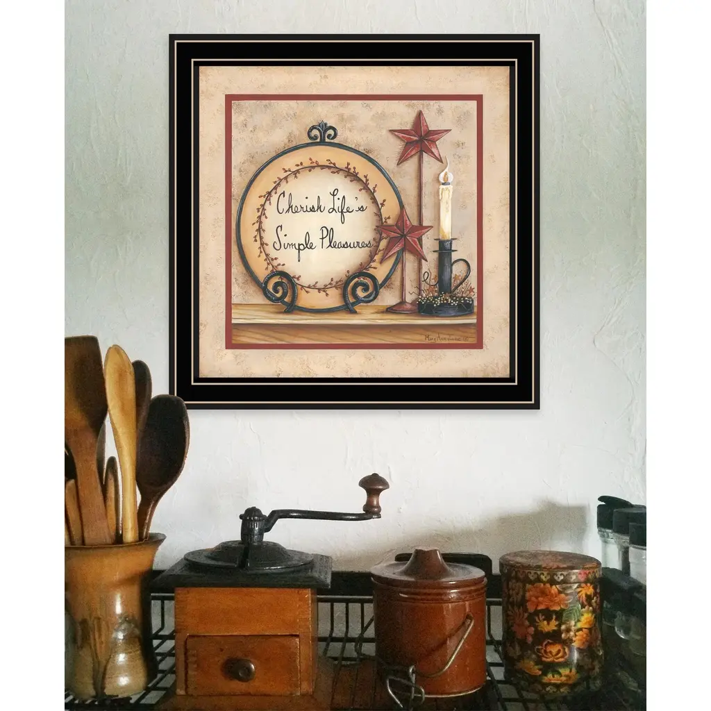 Bring some sizzle to your space with this eye-catching simple pleasures 3 black framed print wall art. This print is a visual artistic expression that allows you to decorate your space in style. Reproduced for you on wood, this hanging decorative accent will be a trendy and fashionable way to dress your walls in a rustic and modern farmhouse vibe. Adding this hanging wall art to your space to make your room feel more finished and attractive. Utilize this opportunity to create a focal point in the room with this fabulous wall decor option. 14" H x 14" W x 1" D