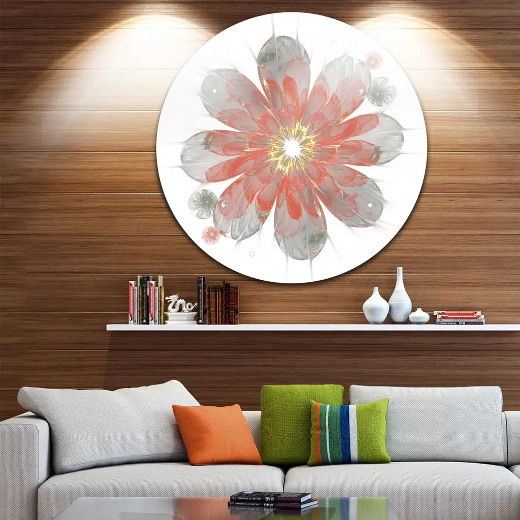 Simple Red And White Fractal Flower, Floral Disc Metal Wall Art, 36"
