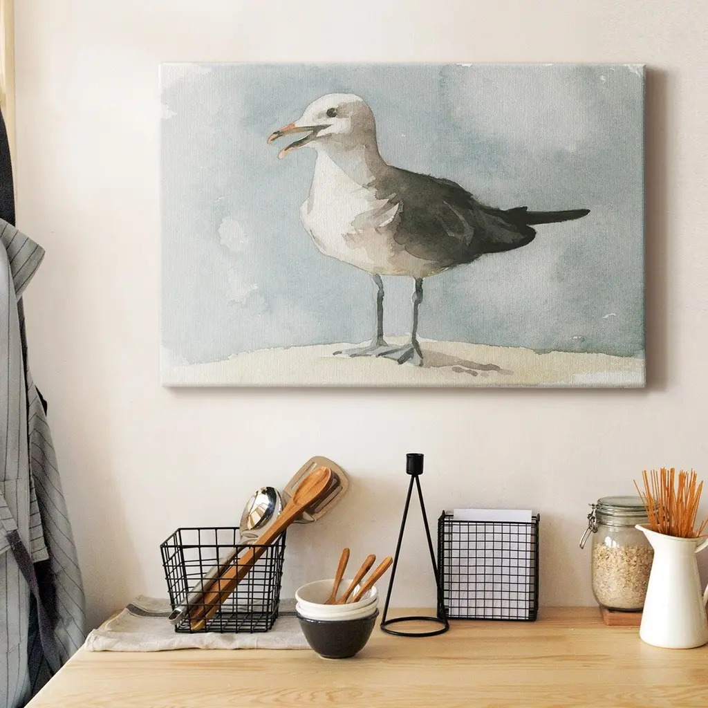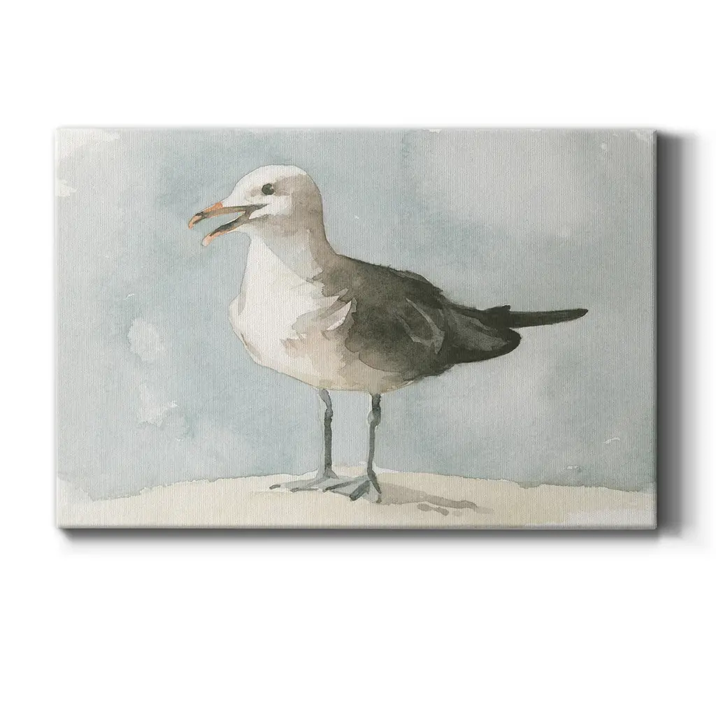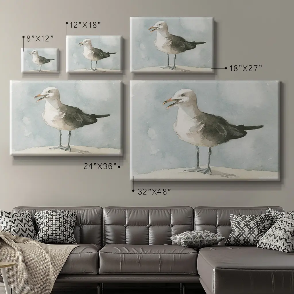 Simple Seagull II Premium Gallery Wrapped Canvas - Ready to Hang A premium hand stretched gallery wrapped canvas print created to last. Featuring a beveled a solid wood stretcher bar, each piece comes ready to hand 6 SIZES AVAILABLE 8''X12'' - Overall Size 12''X18'' - Overall Size 18''X27'' - Overall Size 24''x36'' - Overall Size 32''x48'' - Overall Size 40''x60'' - Overall Size Each piece is made to order. Built to Last Each piece comes ready to hang Solid wood stretcher Fade and Water resistant Made domestically