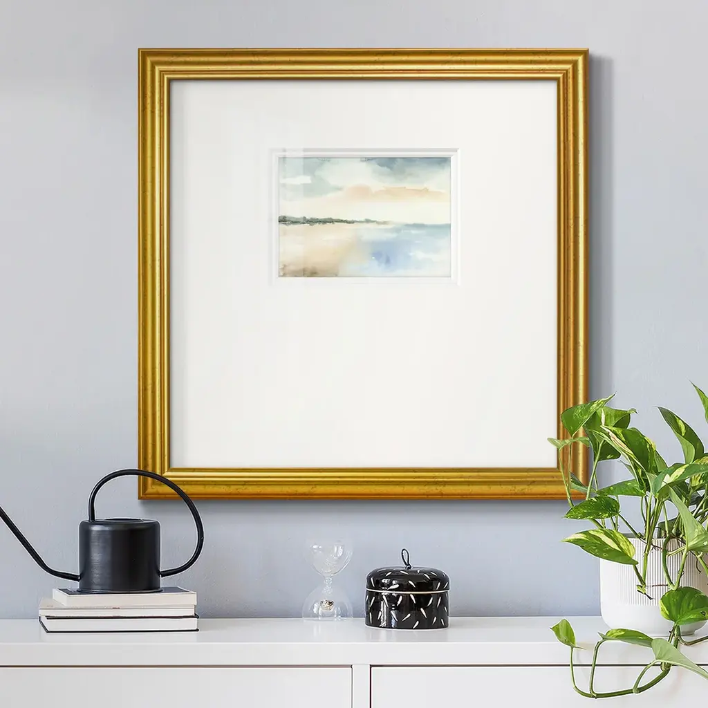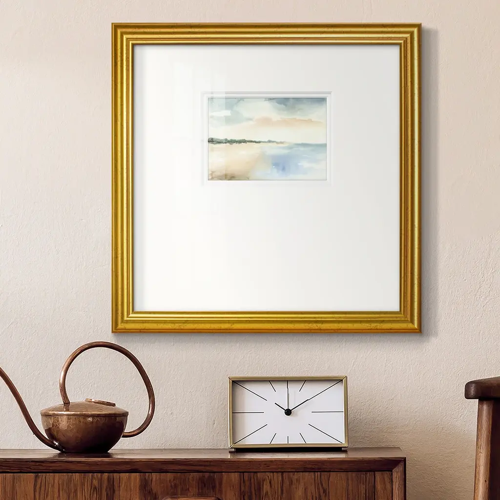 Simple SeaPremium Framed Print A framed cold pressed paper print featuring superior double matting and quality frame. 2 SIZES AVAILABLE 16''X16''' - Overall Size 20''X20''' - Overall Size Each piece is made to order. Each piece comes with hanging hardware. Made in the USA Ready to Hang Giclee Paper Print Plexiglass Beveled Matt Board Double Matte Board
