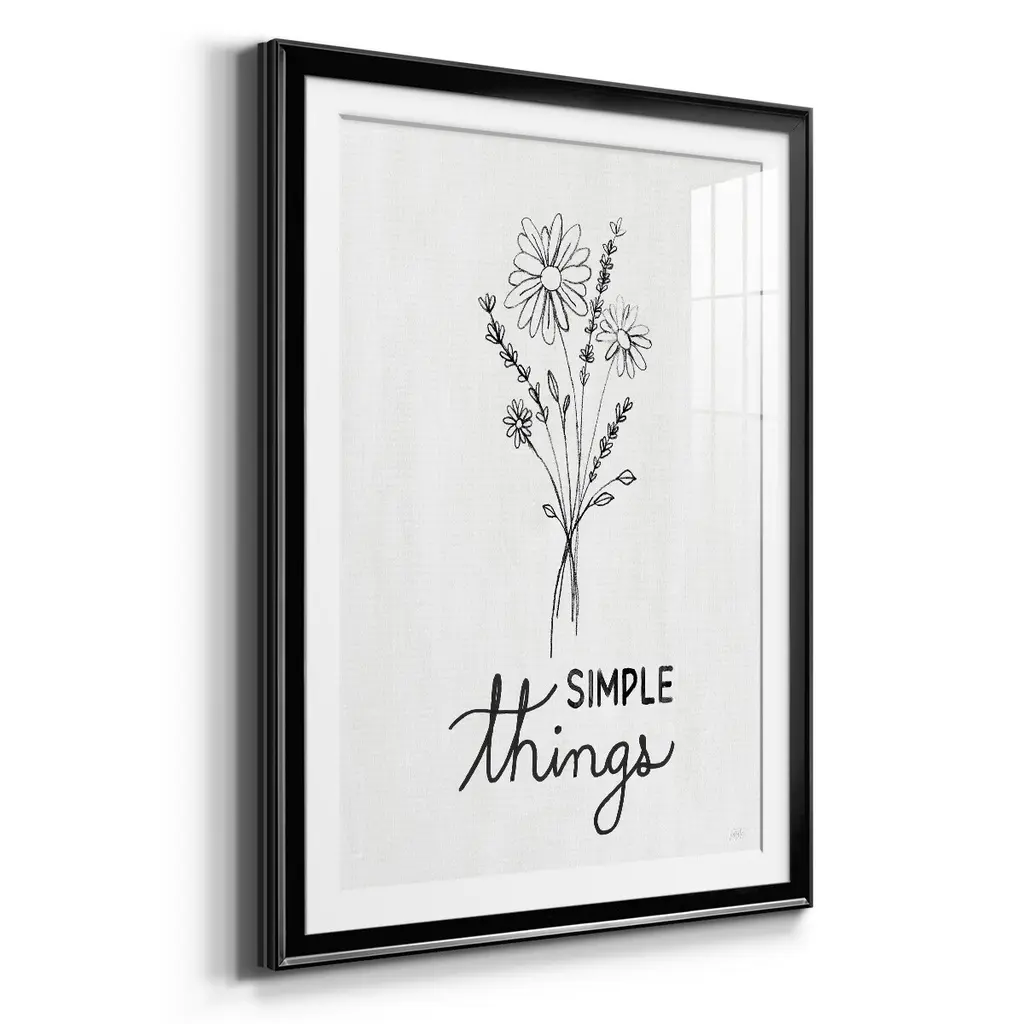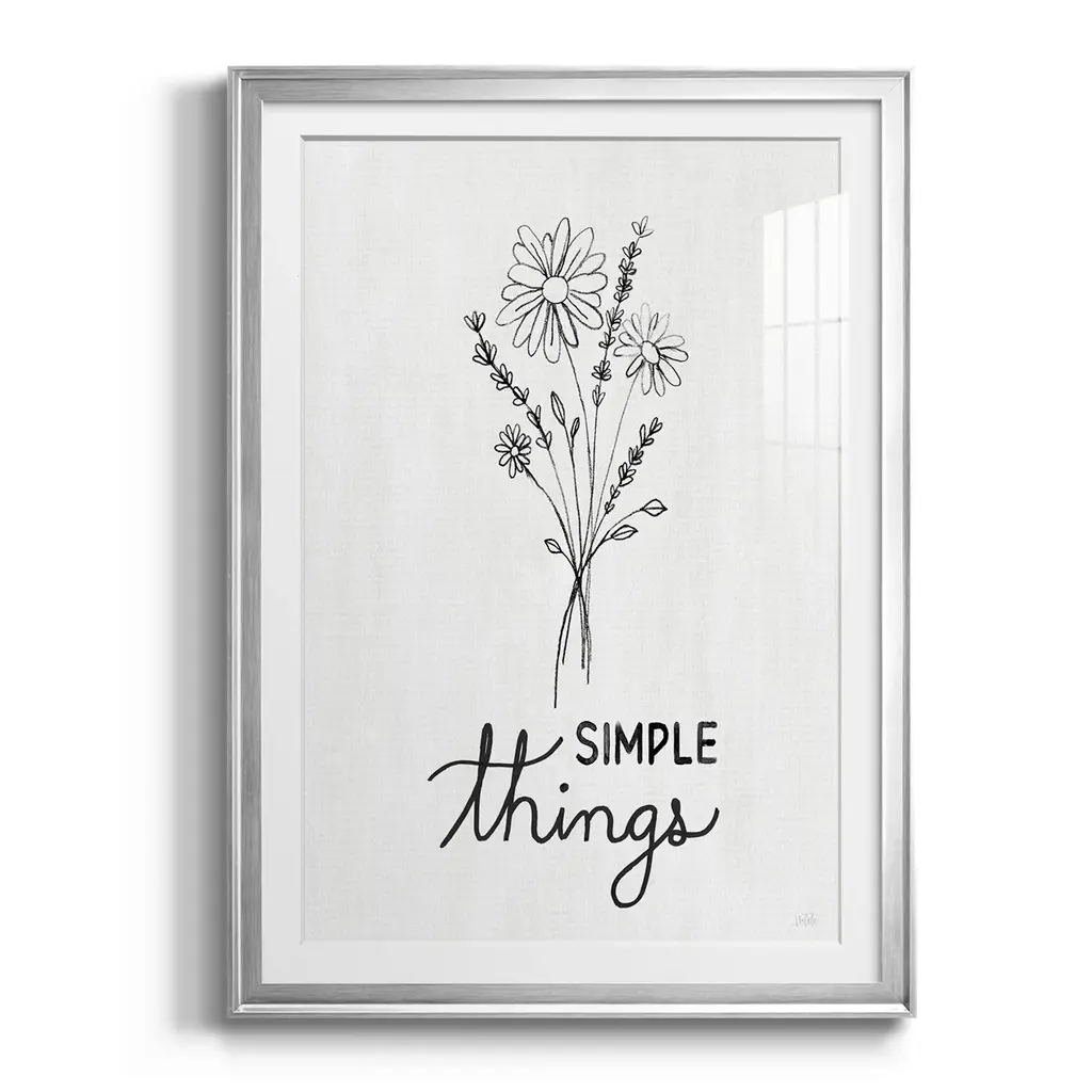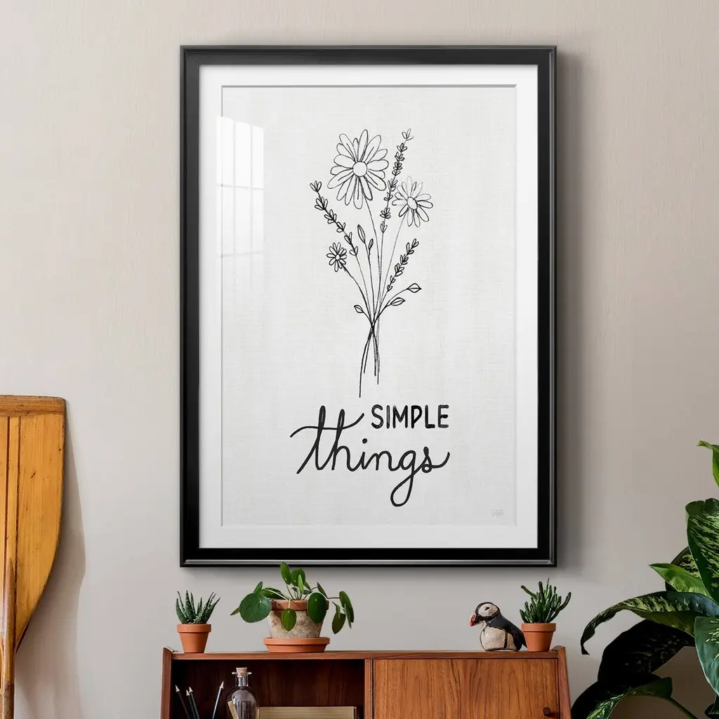Simple Things Sketch Premium Framed Print - Ready to Hang A Premium Framed Print created to last. Framed in distressed wood and available in an array of sizes and colors Featuring a beveled a solid wood stretcher bar, each piece comes ready to hand 4 SIZES AVAILABLE 30.5''X42.5'' - Overall Size 26.5'X36.5'' - Overall Size 22.5''x30.5'' - Overall Size 18.5''x24.5'' - Overall Size Each piece is made to order. Each piece comes with hanging hardware. Made in the USA Ready to Hang Giclee Paper Print Acrylic Glass Beveled Matt Board