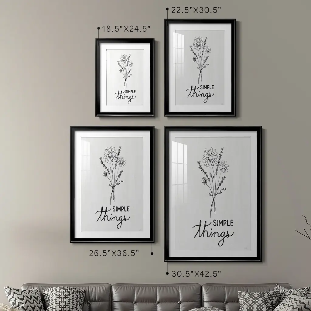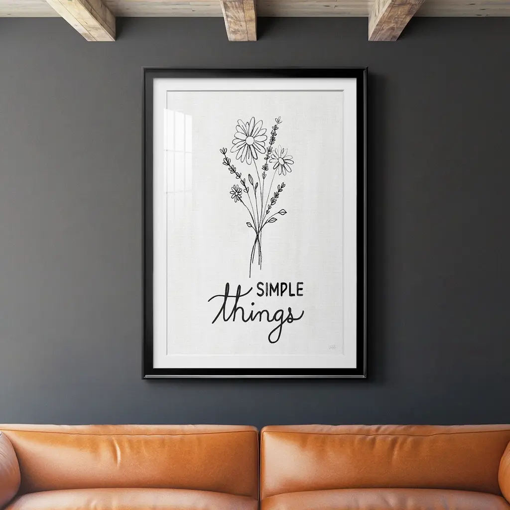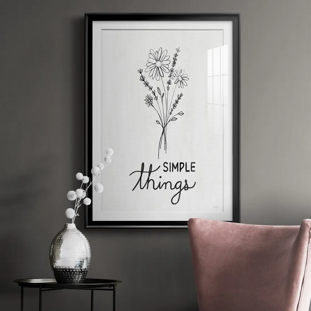 Simple Things Sketch Premium Framed Print - Ready to Hang A Premium Framed Print created to last. Framed in distressed wood and available in an array of sizes and colors Featuring a beveled a solid wood stretcher bar, each piece comes ready to hand 4 SIZES AVAILABLE 30.5''X42.5'' - Overall Size 26.5'X36.5'' - Overall Size 22.5''x30.5'' - Overall Size 18.5''x24.5'' - Overall Size Each piece is made to order. Each piece comes with hanging hardware. Made in the USA Ready to Hang Giclee Paper Print Acrylic Glass Beveled Matt Board