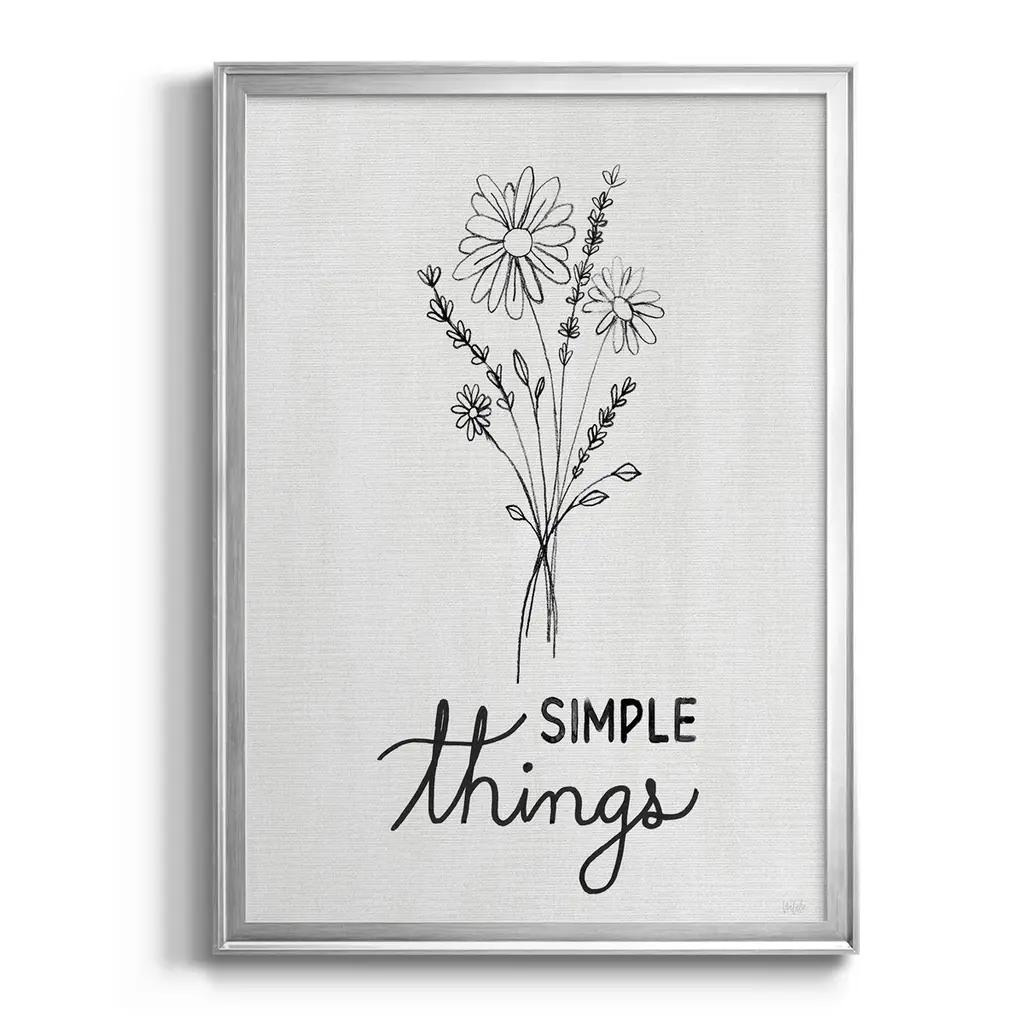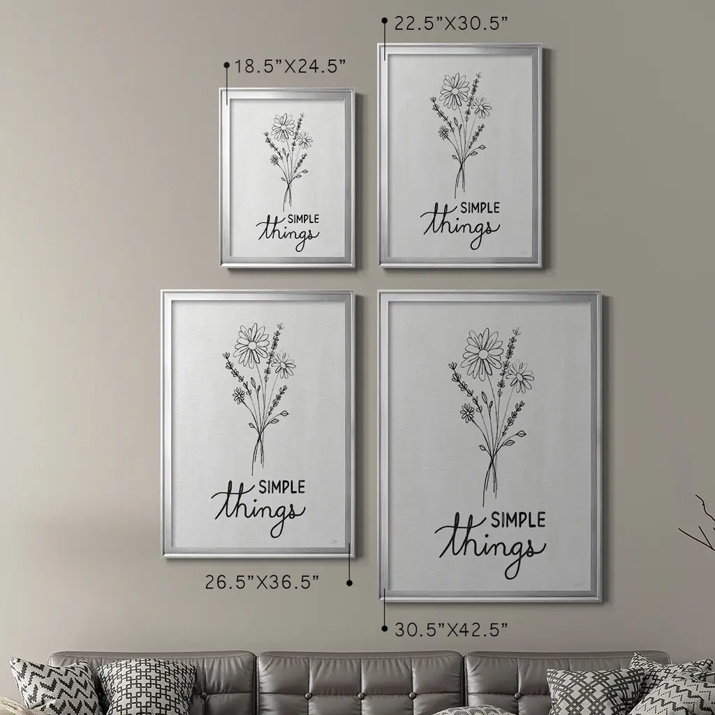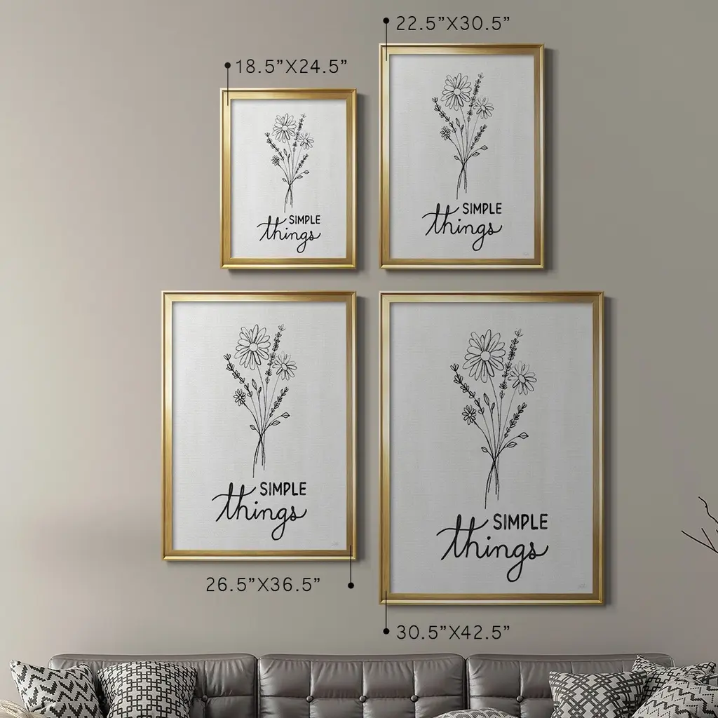 Simple Things Sketch Premium Framed Print - Ready to Hang A Premium Framed Print created to last. Framed in distressed wood and available in an array of sizes and colors Featuring a beveled a solid wood stretcher bar, each piece comes ready to hand 4 SIZES AVAILABLE 30.5''X42.5'' - Overall Size 26.5'X36.5'' - Overall Size 22.5''x30.5'' - Overall Size 18.5''x24.5'' - Overall Size Each piece is made to order. Each piece comes with hanging hardware. Made in the USA Ready to Hang