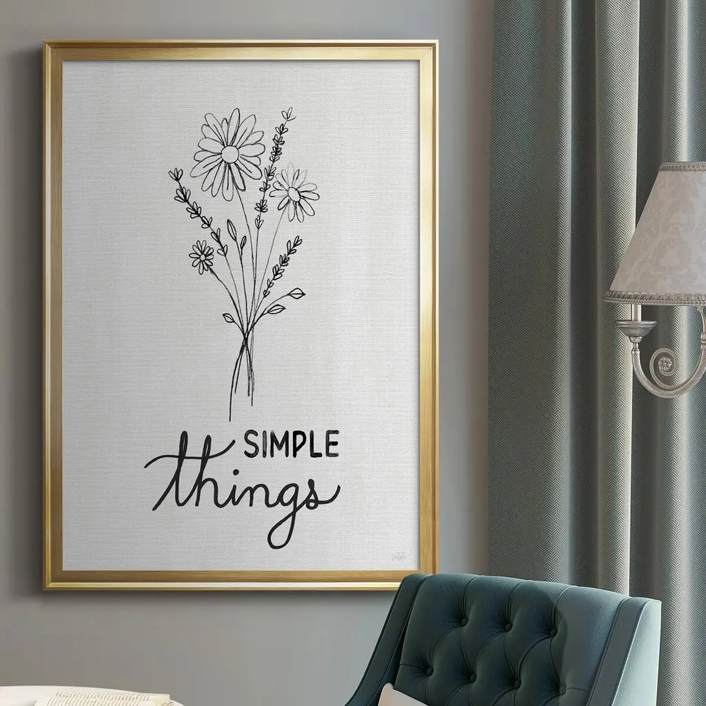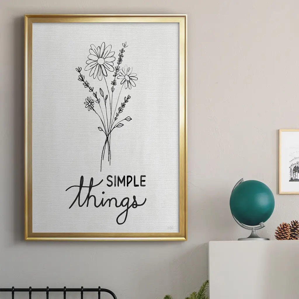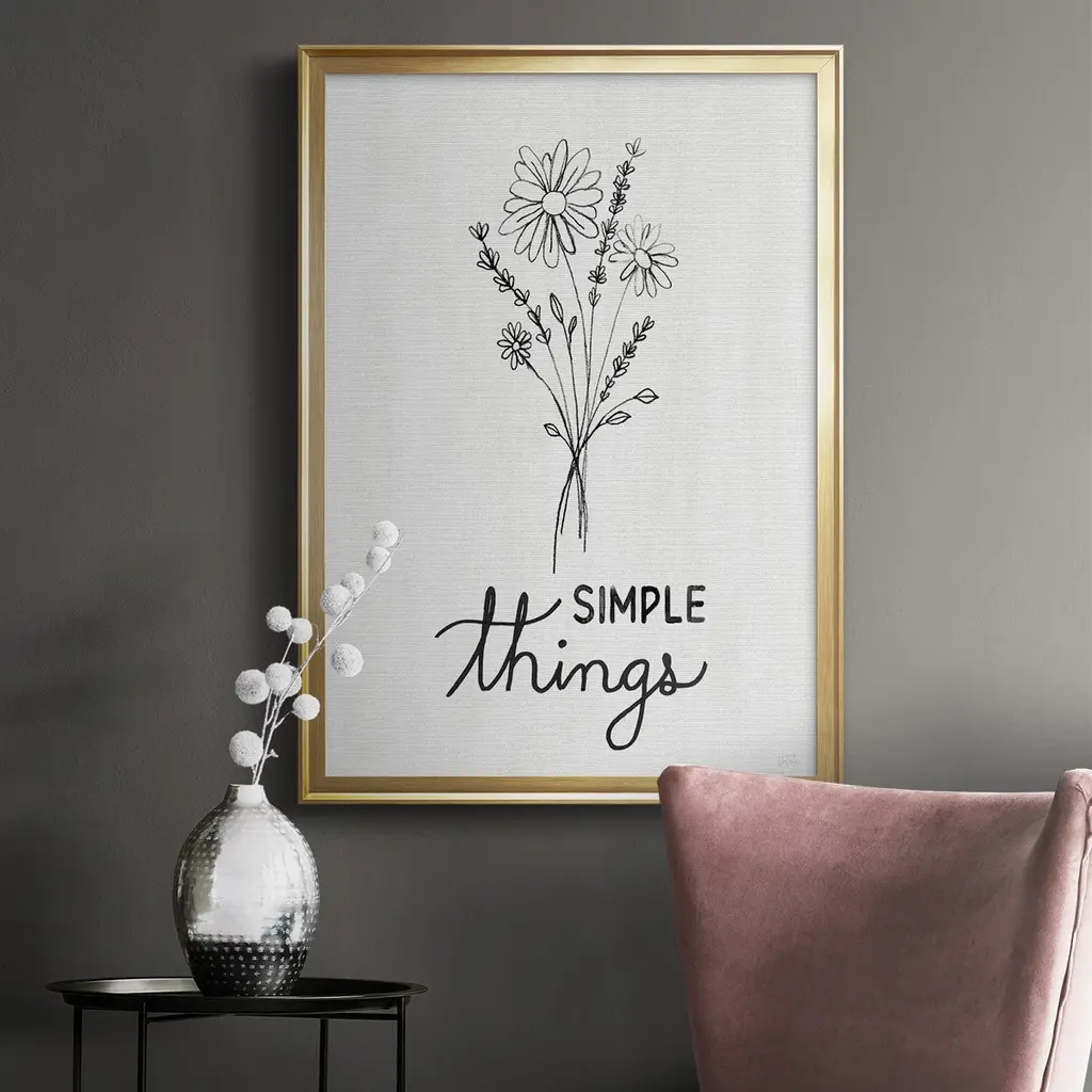 Simple Things Sketch Premium Framed Print - Ready to Hang A Premium Framed Print created to last. Framed in distressed wood and available in an array of sizes and colors Featuring a beveled a solid wood stretcher bar, each piece comes ready to hand 4 SIZES AVAILABLE 30.5''X42.5'' - Overall Size 26.5'X36.5'' - Overall Size 22.5''x30.5'' - Overall Size 18.5''x24.5'' - Overall Size Each piece is made to order. Each piece comes with hanging hardware. Made in the USA Ready to Hang