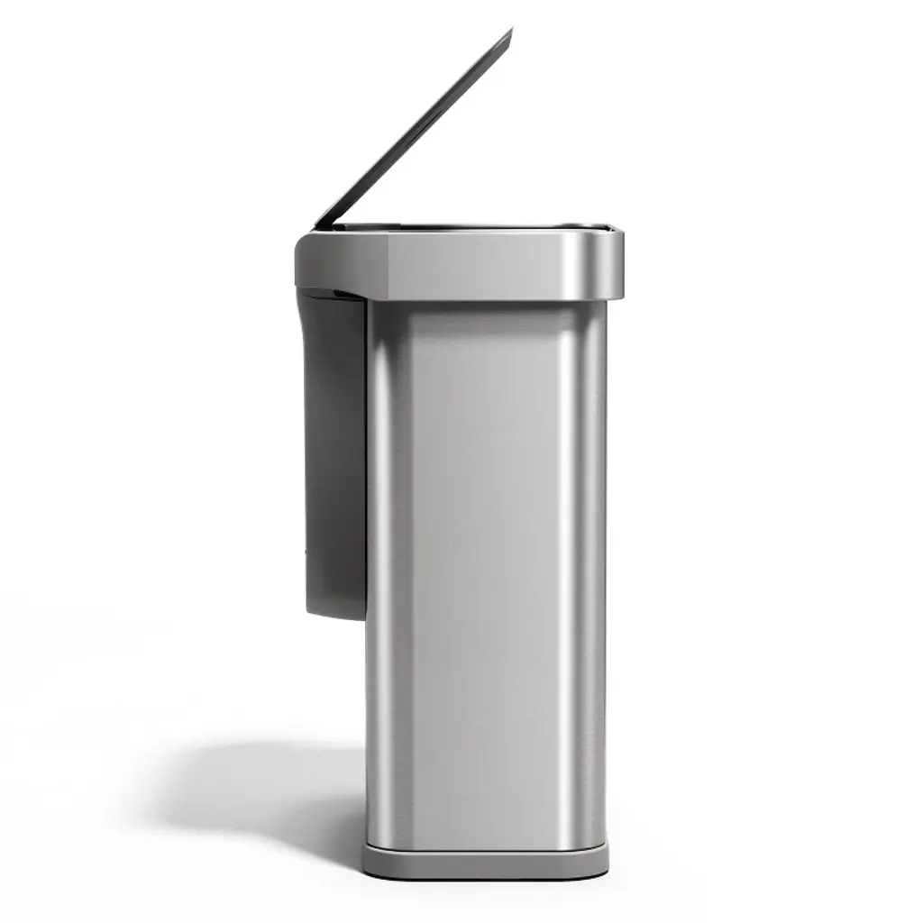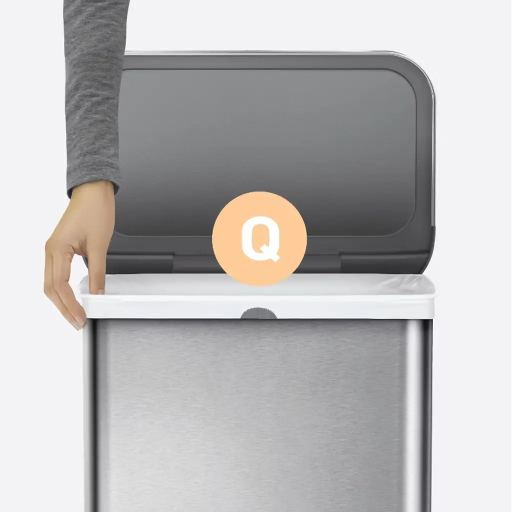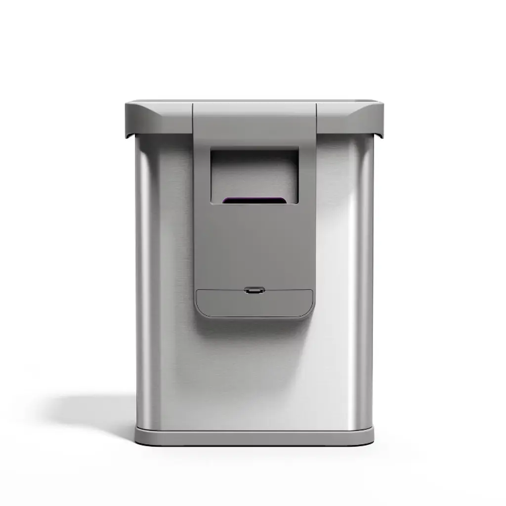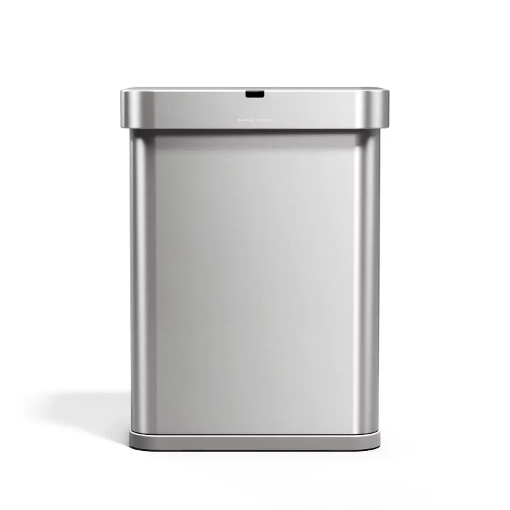 Experience the future of waste management with this 58L rectangular sensor can featuring both voice and motion control technology. This innovative trash can responds to voice commands through advanced voice recognition that works even in noisy kitchens. The motion sensor offers an alternative hands-free option – perfect when your hands are full or messy from cooking. The rectangular shape maximizes capacity while fitting neatly against walls and in tight spaces. At 58 liters, it holds more trash with fewer trips to the outdoor bin. The wide opening accommodates pizza boxes, food containers, and awkward items with ease. The touch-free operation reduces the spread of germs in your home. The brushed stainless steel surface features an invisible antimicrobial coating that actively resists bacteria growth throughout the day. Each can includes a natural odorsorb pod that neutralizes trash odors for up to 45 days. The pod fits discreetly under the lid, working silently to keep your kitchen fresh. Use with Code Q custom-fit liners for optimal performance. These extra-thick liners feature reinforced double seams that prevent rips and leaks, even when packed full. The custom fit eliminates unsightly bag overhang. Add the compost caddy (sold separately) that docks to the side of the can for convenient organic waste separation. 58L rectangular sensor can. What's Included:Natural odorsorb pod (45-day supply)Liner pocket with sample pack of Code Q linersPower adapterQuick start guideADA-compliant design ensures accessibility for all users.