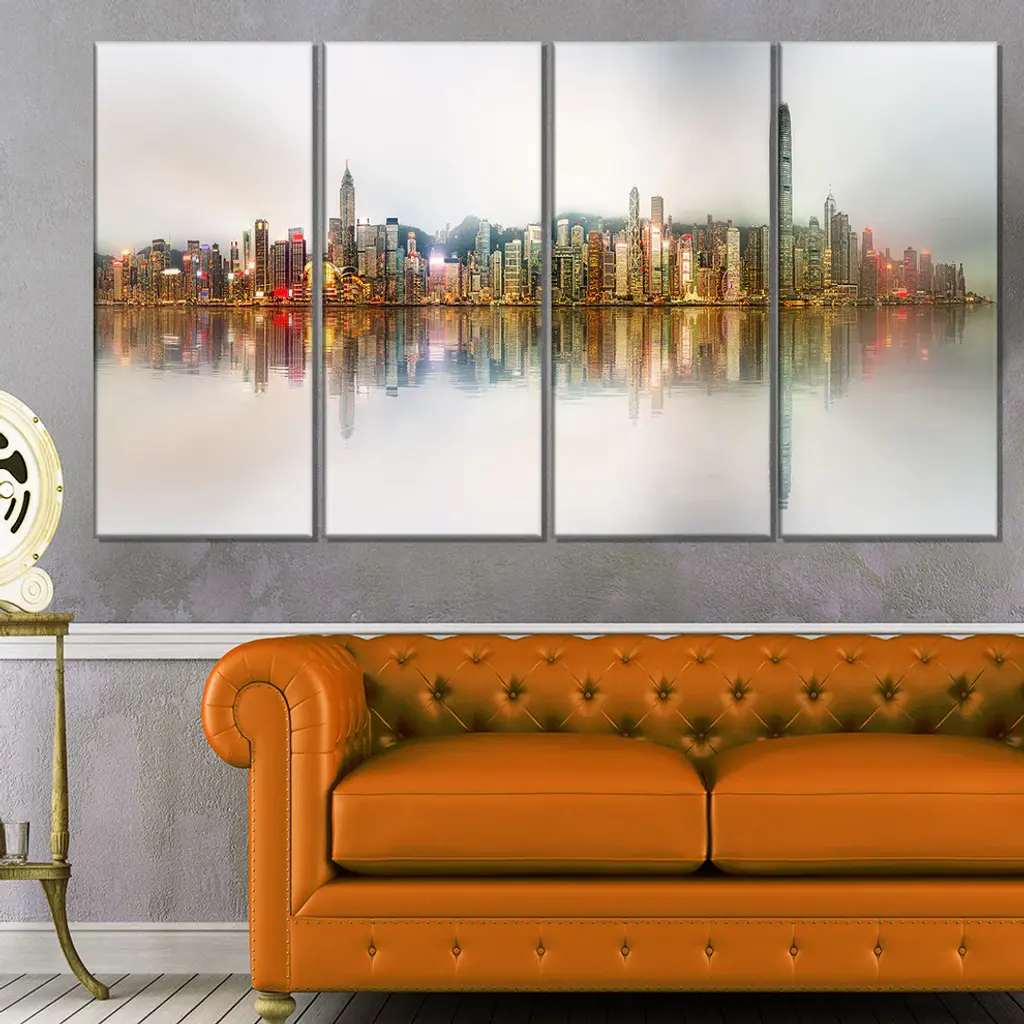 "Singapore Financial District" Panorama Cityscape Wall Art, 48"x28", 4-Panels