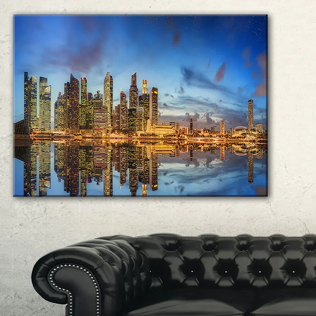 The Singapore Skyline and View of Marina Bay canvas art print is sure to make an impression on anyone who sees it. This artwork is gallery wrapped around a 1-inch solid wood frame and arrives carefully packaged and entirely ready to hang on the wall. Design Art only uses the highest resolution and pigments to ensure a crisp colorful print that is never faded or pixelated. This artwork is sure to be a conversation starter in any home or office.