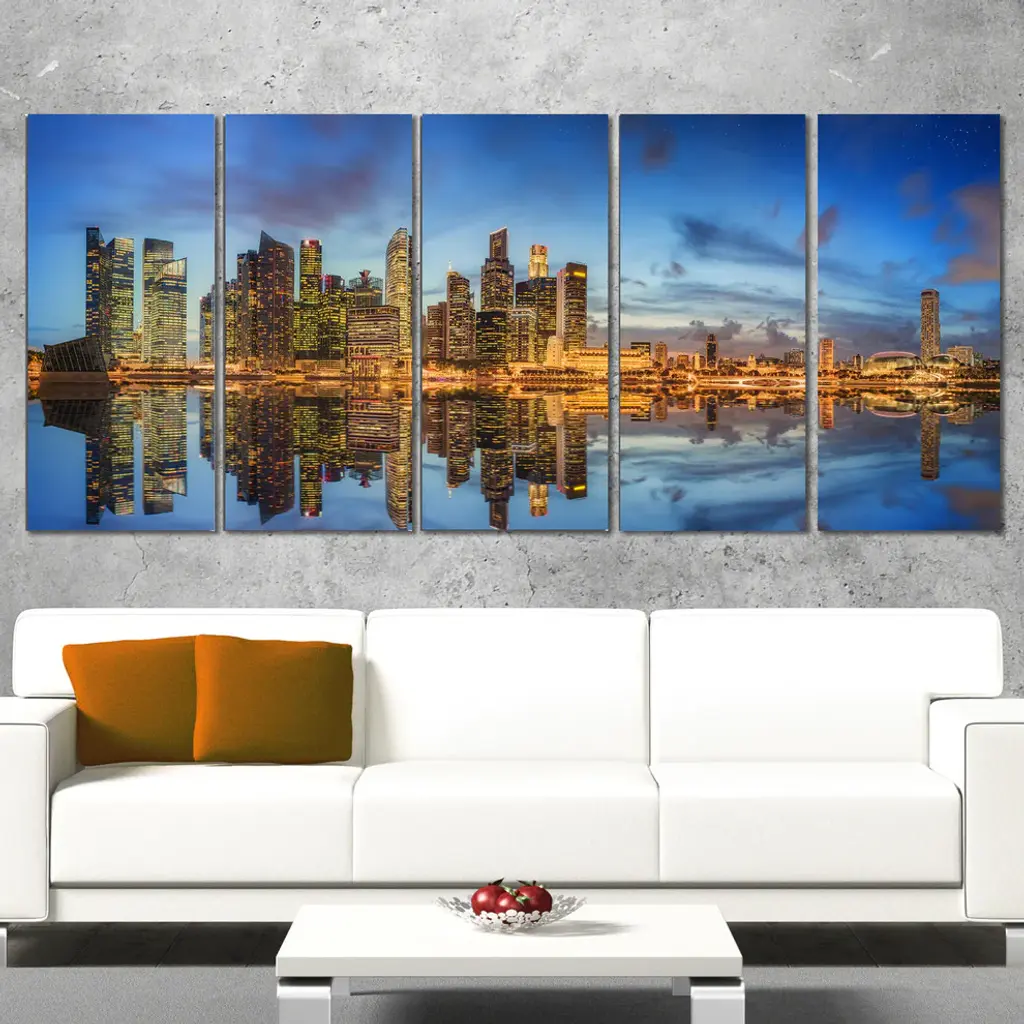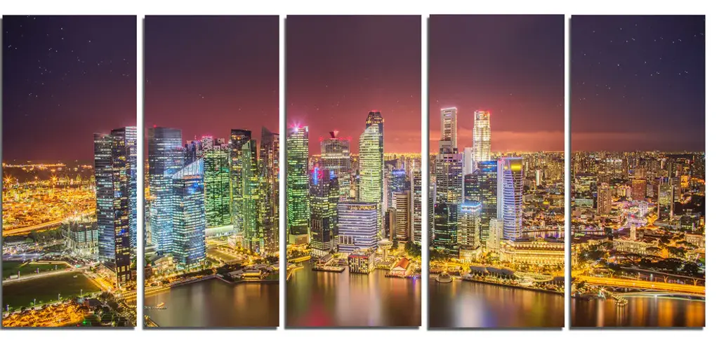 "Singapore Skyline And View Of Marina Bay" Wall Art, 60"x28", 5-Panels