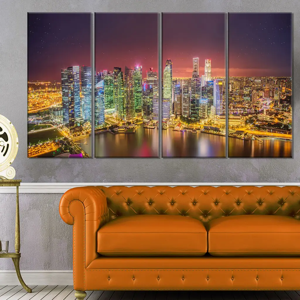 "Singapore Skyline View Of Marina Bay" Canvas Print48"x28", 4-Panels