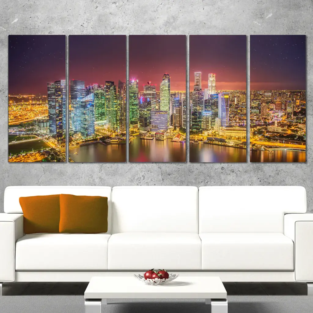 "Singapore Skyline View Of Marina Bay" Canvas Print60"x28", 5-Panels