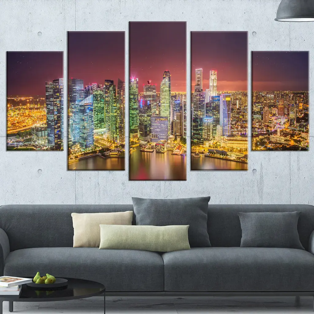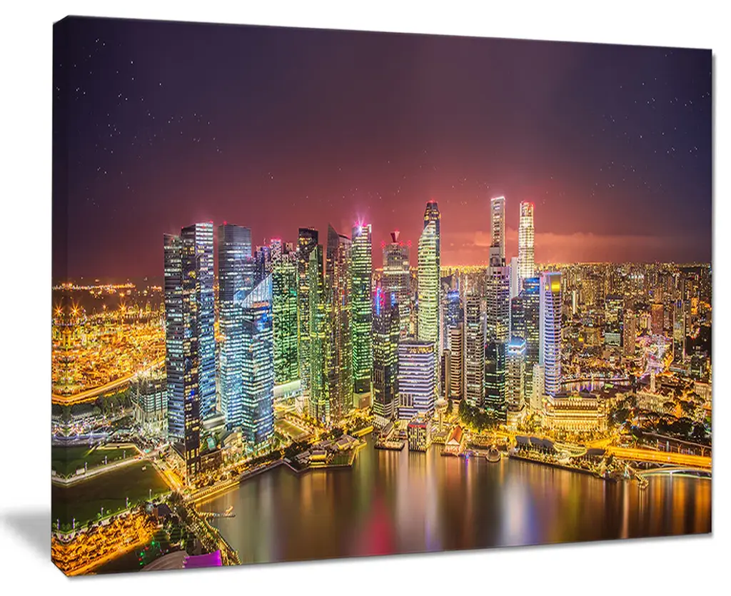 The Singapore Skyline View of Marina Bay canvas art print is sure to make an impression on anyone who sees it. This artwork is gallery wrapped around a 1-inch solid wood frame and arrives carefully packaged and entirely ready to hang on the wall. Design Art only uses the highest resolution and pigments to ensure a crisp colorful print that is never faded or pixelated. This artwork is sure to be a conversation starter in any home or office.